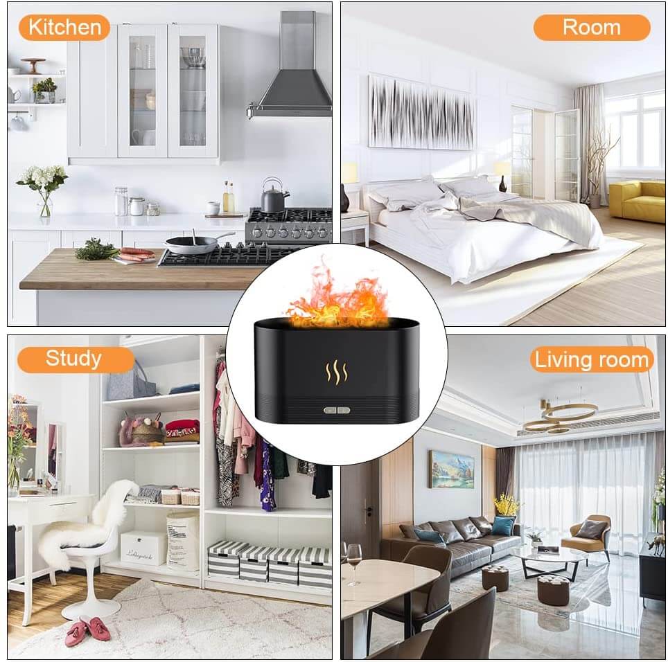 Flame luftfuktare kombinerar ett nattljus och dimma för att skapa en realistisk flameffekt, slappnar av och lindrar stress, ger en romantisk vy till ditt hem.