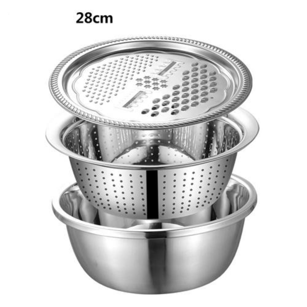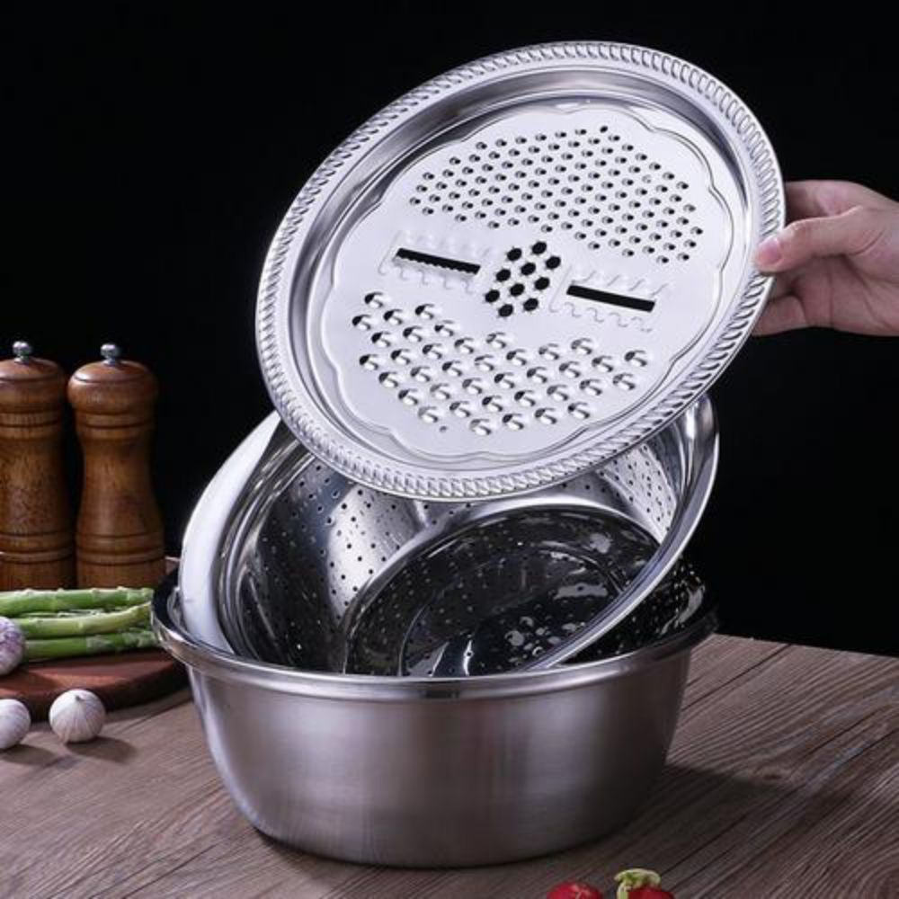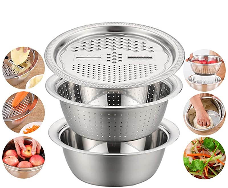 Blir du trött av att laga mat i köket och har mindre tid att göra andra saker? Nu kan du spara tid och energi med den multifunktionella grönsakshackaren i rostfritt stål med avrinningsbassäng. Det här redskapet hjälper dig att tvätta, dränera och riva dina matvaror på ett och samma ställe!