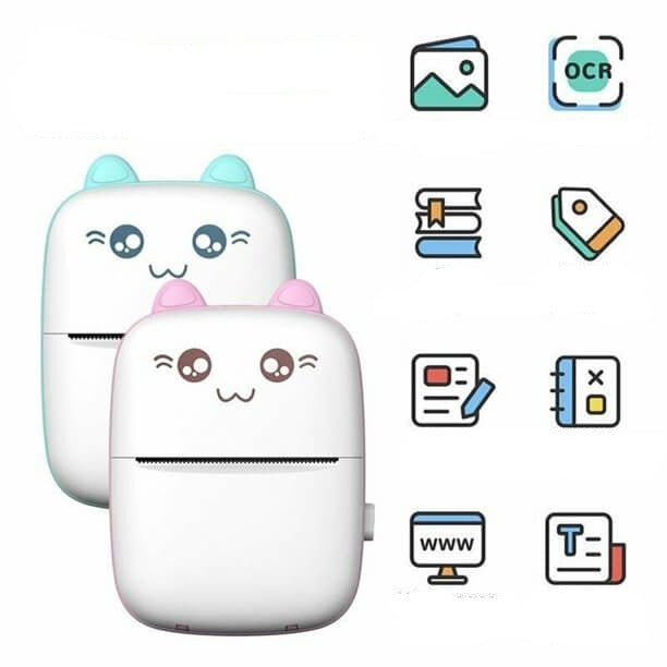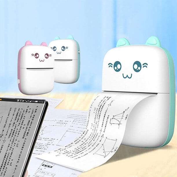Den här fickskrivaren använder avancerad termisk utskriftsteknik och är miljövänlig och behöver ingen bläckpatron. Den har också stöd för flera funktioner som utskrift av foton, etiketter, meddelanden, listor, register, QR-koder och så vidare.