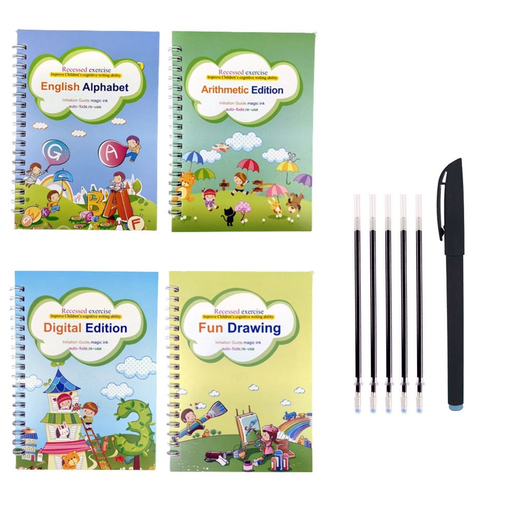 Magic Practice Copybook erbjuder övningsböcker som hjälper barn att lära sig genom att upprepa uppgifter, vilket hjälper dem att utveckla sitt muskelminne.