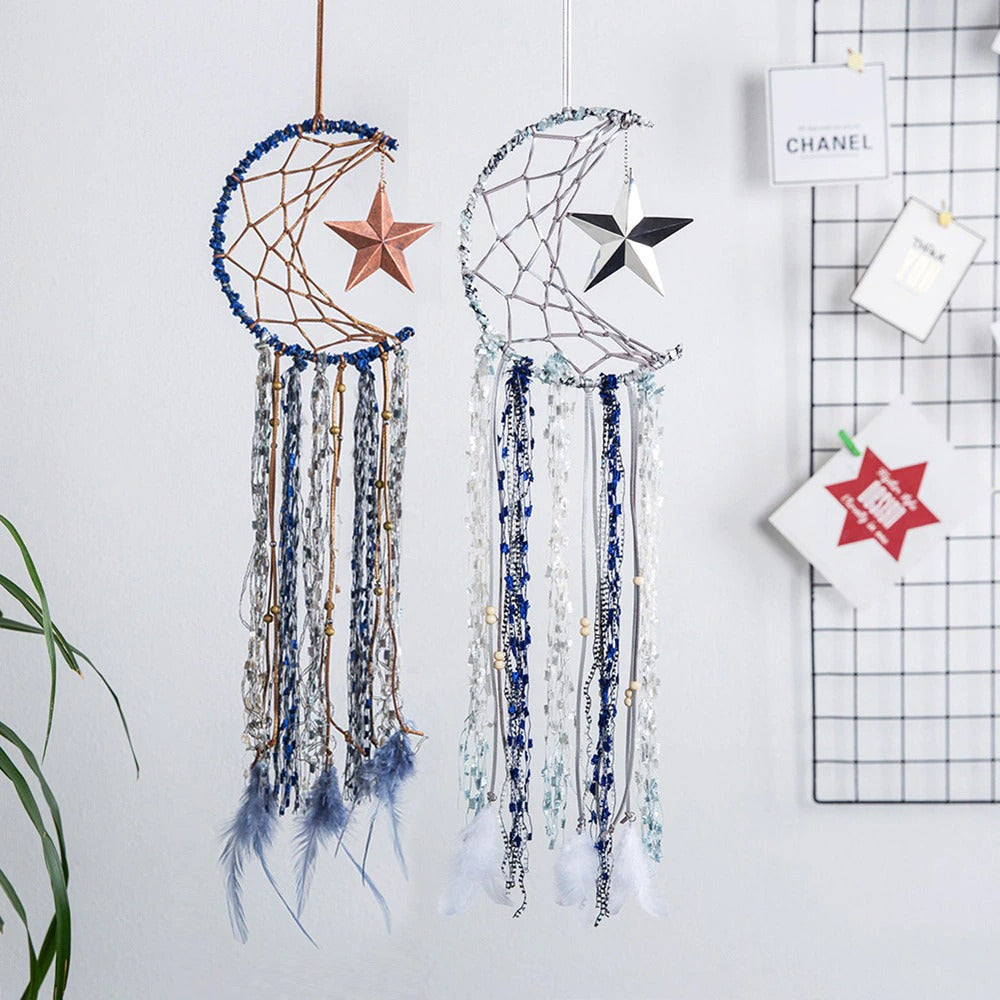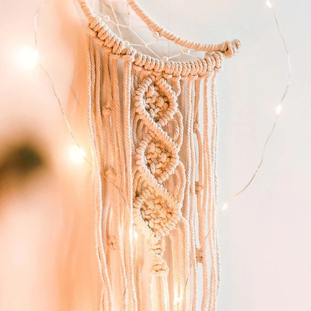 Få en vacker känsla och reglera energierna hemma med den här lättanvända Macrame Moon Dreamcatcher! Detta är fantastiska uppfinningar för människor som har svårt att sova på grund av mardrömmar eller bara en hyperaktiv fantasi. Dessutom ger de en känsla av frid och avslappnar hyperaktiva sinnen, vilket gör dem användbara för meditation också!