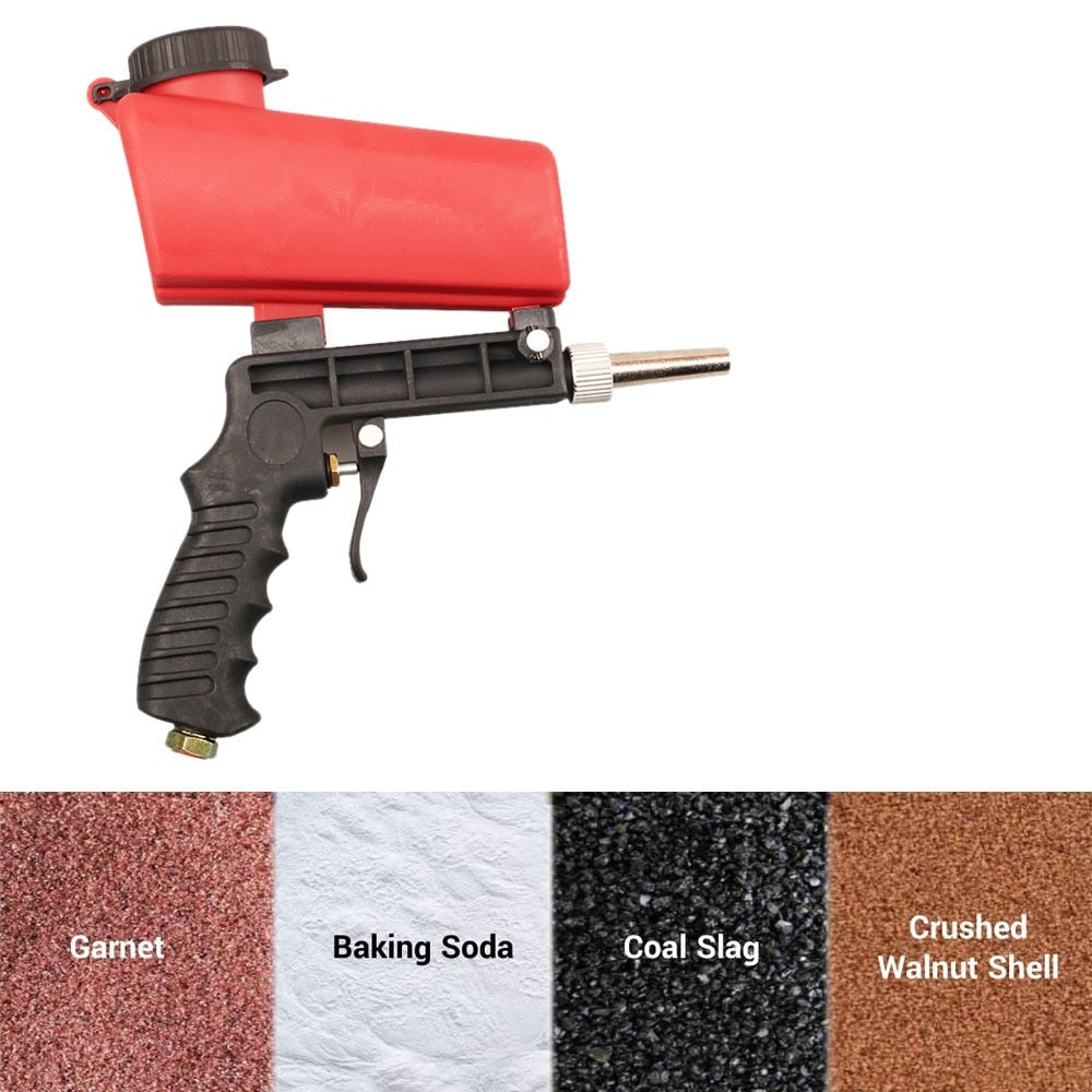 Spara din dyrbara tid från att ta bort svåra fläckar, rost, flera lager färg eller graffiti med den här bärbara sandblåsaren! Genom att använda det här verktyget får du jobbet gjort 10 gånger snabbare genom att bara trycka på avtryckaren!