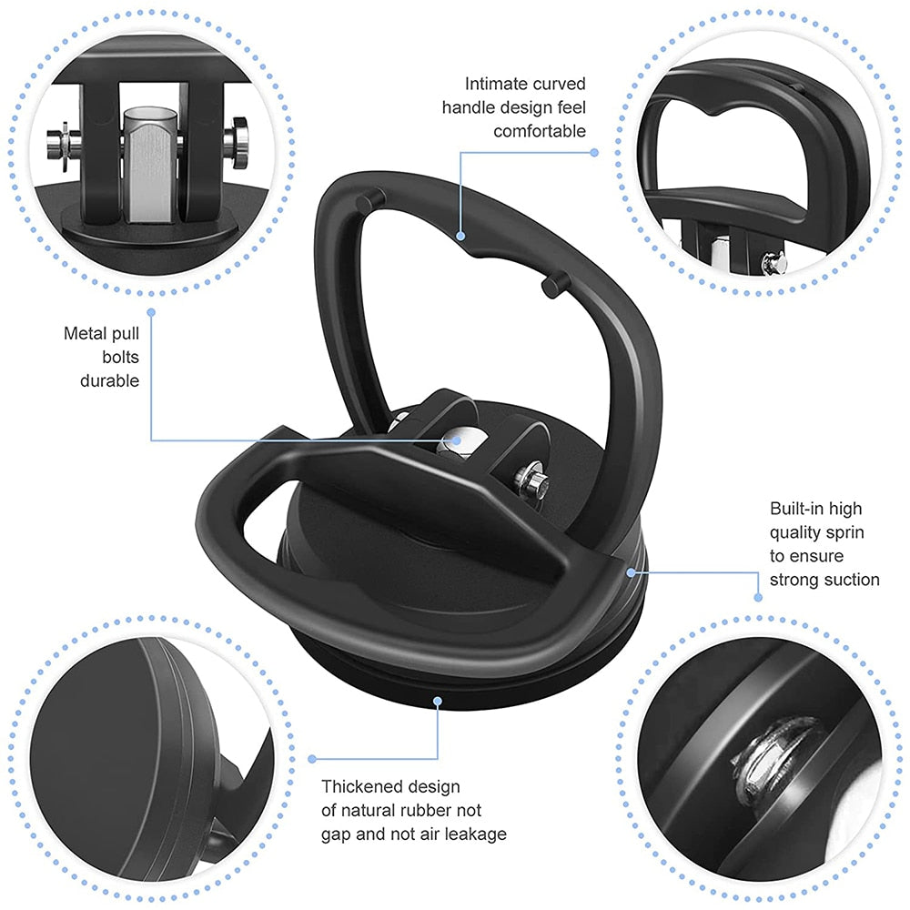 SÄKERT FÖR DITT FORDON: Tillverkad av kraftig gummi och ABS-plast, är denna bilbultdragare sugkopp bilbultfixare utformad för att lyfta och dra olika material försiktigt för att undvika att repa materialet; Tillverkad med hållbart luktfritt, extra starkt gummi, ger dessa reparationsverktyg en tät tät tätning på de flesta plana, icke-porösa ytor med ett enda slag.