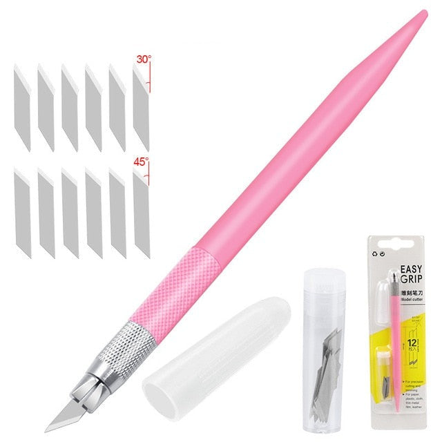 Det handhållna verktyget har ett 360° roterande blad som hjälper dig att enkelt och snabbt skära komplexa former på många olika material. Till skillnad från andra hantverksknivar är bladet säkert och lätt att använda. Den är byggd på speciell teknik som gör att du kan skära raka linjer med hjälp av en plastlinjal och böjda linjer. Perfekt för alla konsthantverksprojekt!