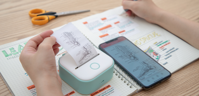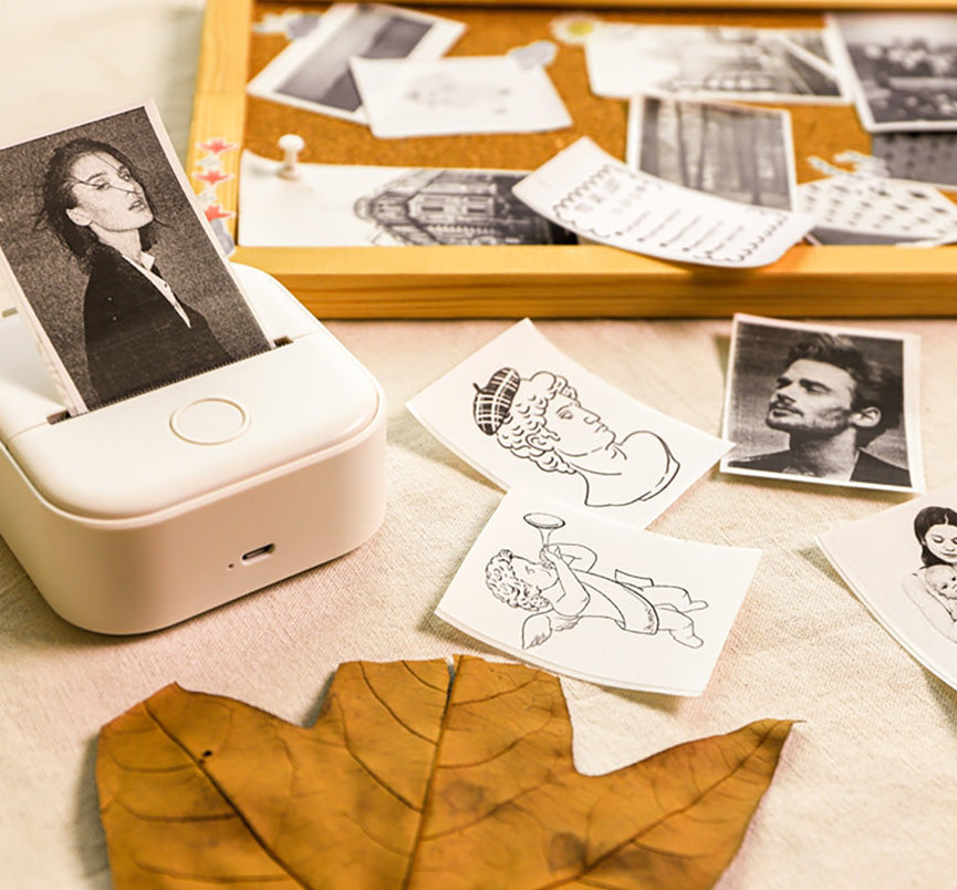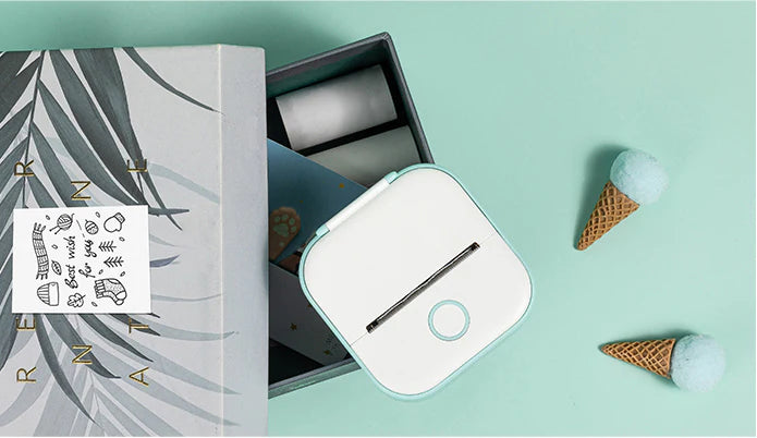 Mini Portable Printer är en elegant och kompakt enhet som du kan använda för att skriva ut dina idéer, anteckningar och dokument. Den är lätt att ta med dig vart du än går så att du kan se till att du alltid har ditt material till hands. Den är inte bara vacker utan också otroligt praktisk!