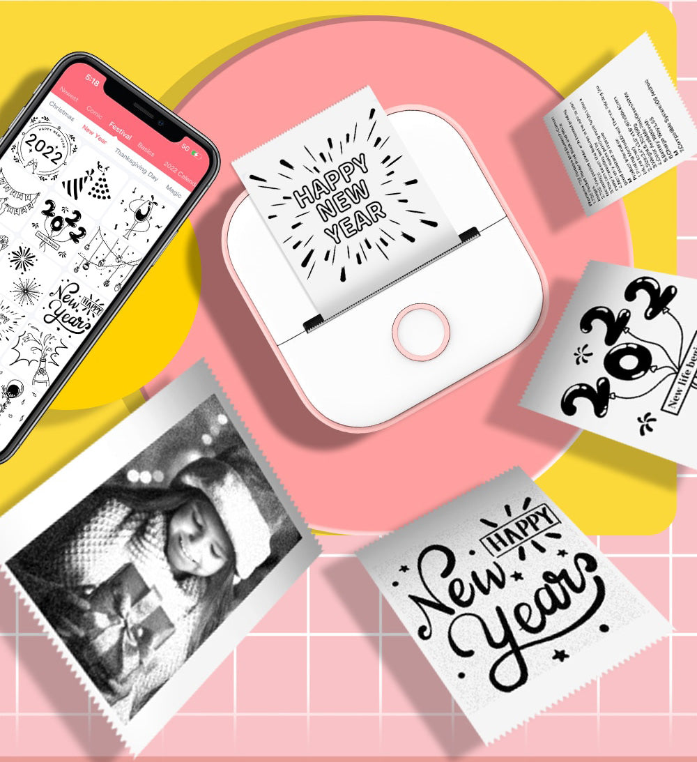 Mångsidig - Den nya stilen av en inlösningsfri fickskrivare används för att skriva ut bilder/foton, minnesanteckningar, inköpslistor, anteckningar för studier/möten osv.