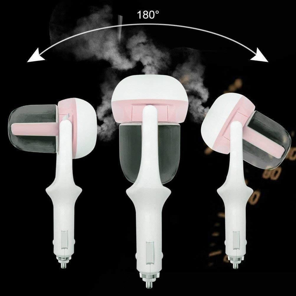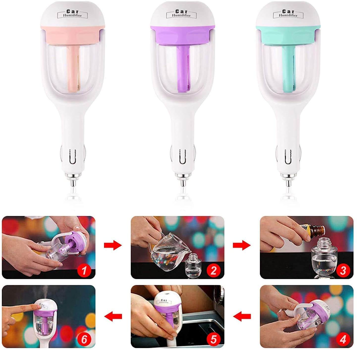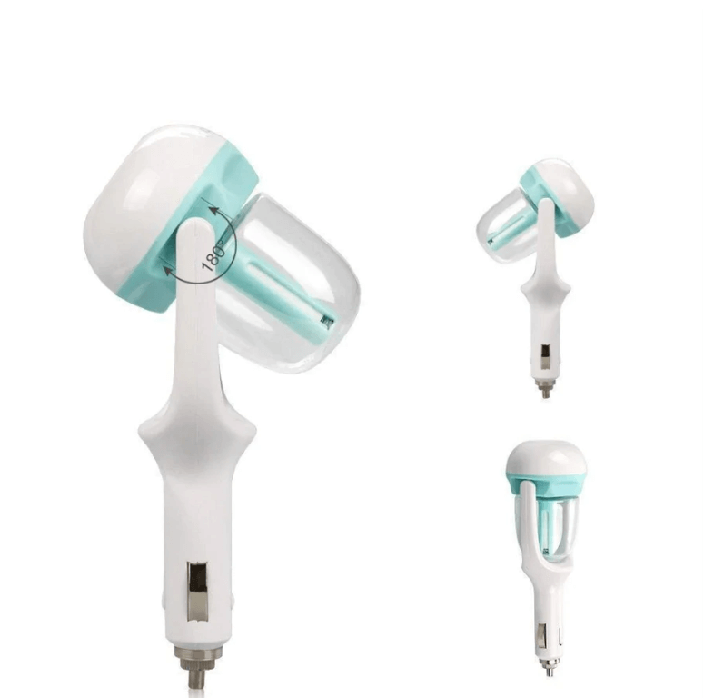 ERGONOMISK DESIGN: Luftfuktarens vattentank kan rotera i 180 grader utan läckage, standardgränssnitt för billaddare, vilket kan vara kompatibelt med de flesta fordon. Inkluderar laddningsdesign, inget behov av att förbereda den externa nätadaptern eller kabeln. Enkel att använda, anslut luftfuktaren till bilens cigarettändare.