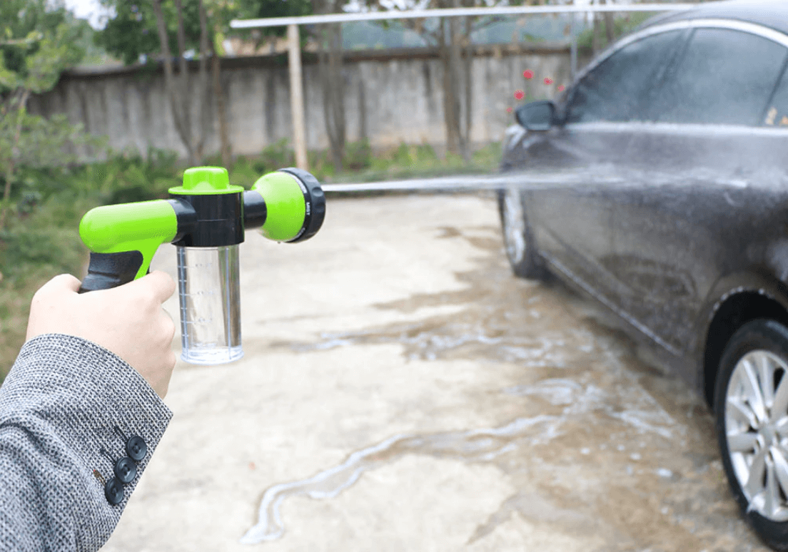 Slangmunstycket Foam Gun är en robust och hållbar munstycksspruta med en behållare för rengöringsmedel. Med denna innovativa kombination kan du snabbt och enkelt rengöra allt från bilar och motorcyklar till husdjur och utemöbler.
