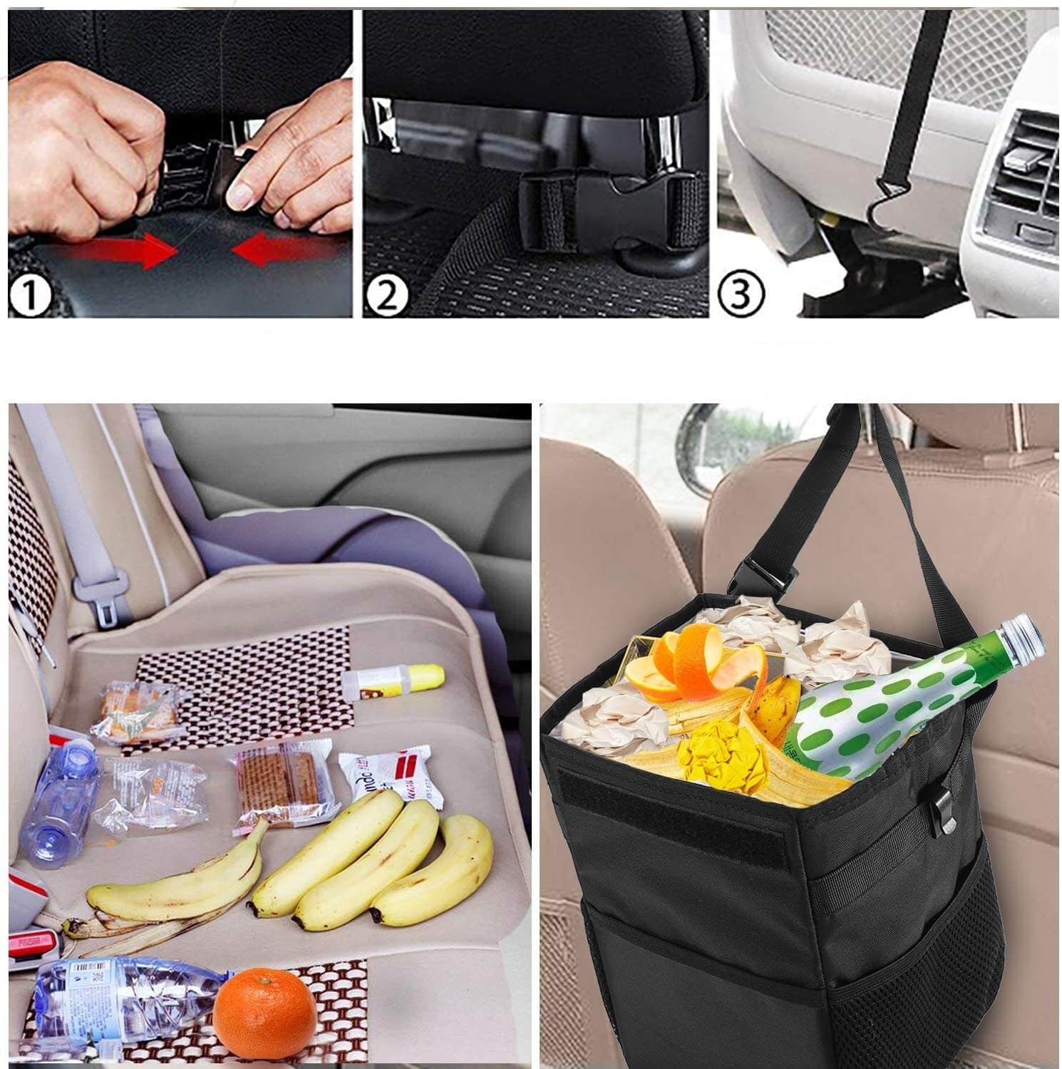 Säker att placera var som helst - Vår papperskorg för bilar har ett justerbart band, en bottenkrok och en dragsko. Dessa fästen gör att du kan hänga den för sätesryggen eller sätesfronten fäster på konsolen eller stå på golvet, var du än vill placera den.