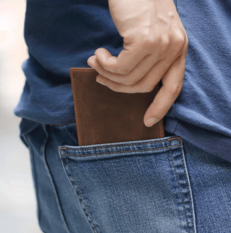 VÄGTPLAN FÖR FRONT- ELLER BACKFÄCK - Den här plånboken i äkta läder är tunt utformad, så att du kan använda den som en plånbok för fram- eller bakficka.