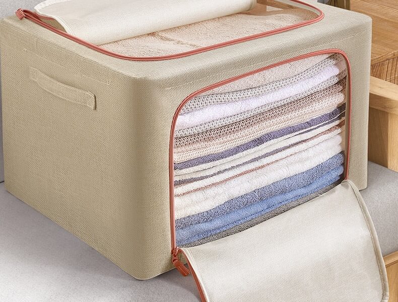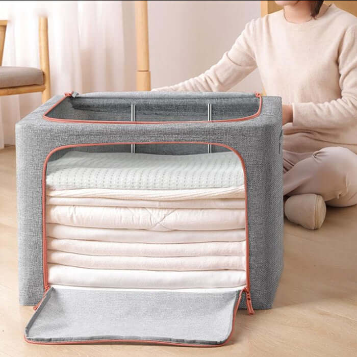 Den vikbara förvaringsväskan i tyg är tillverkad av högkvalitativt, luktfritt och starkt linnetyg som främjar ventilationen och skyddar dina förvarade saker.