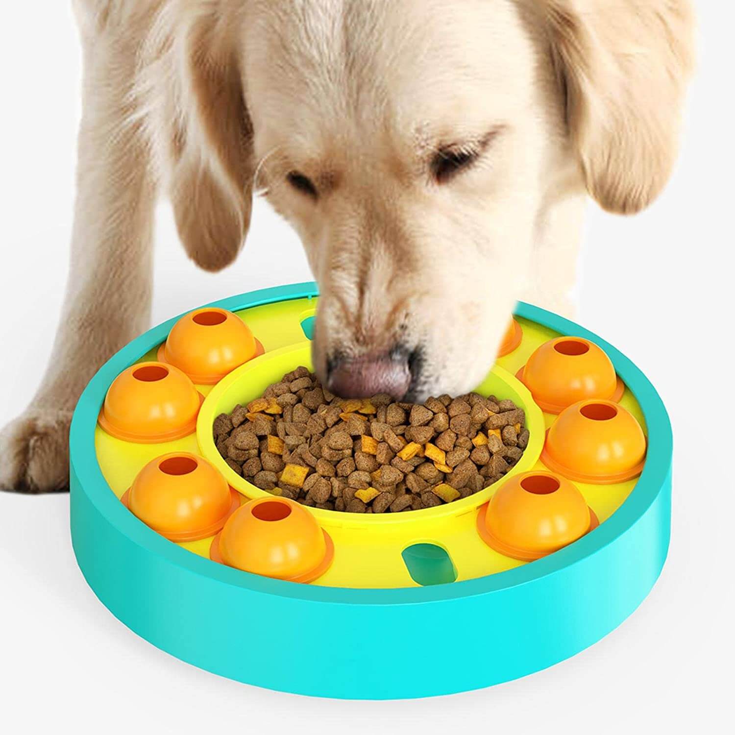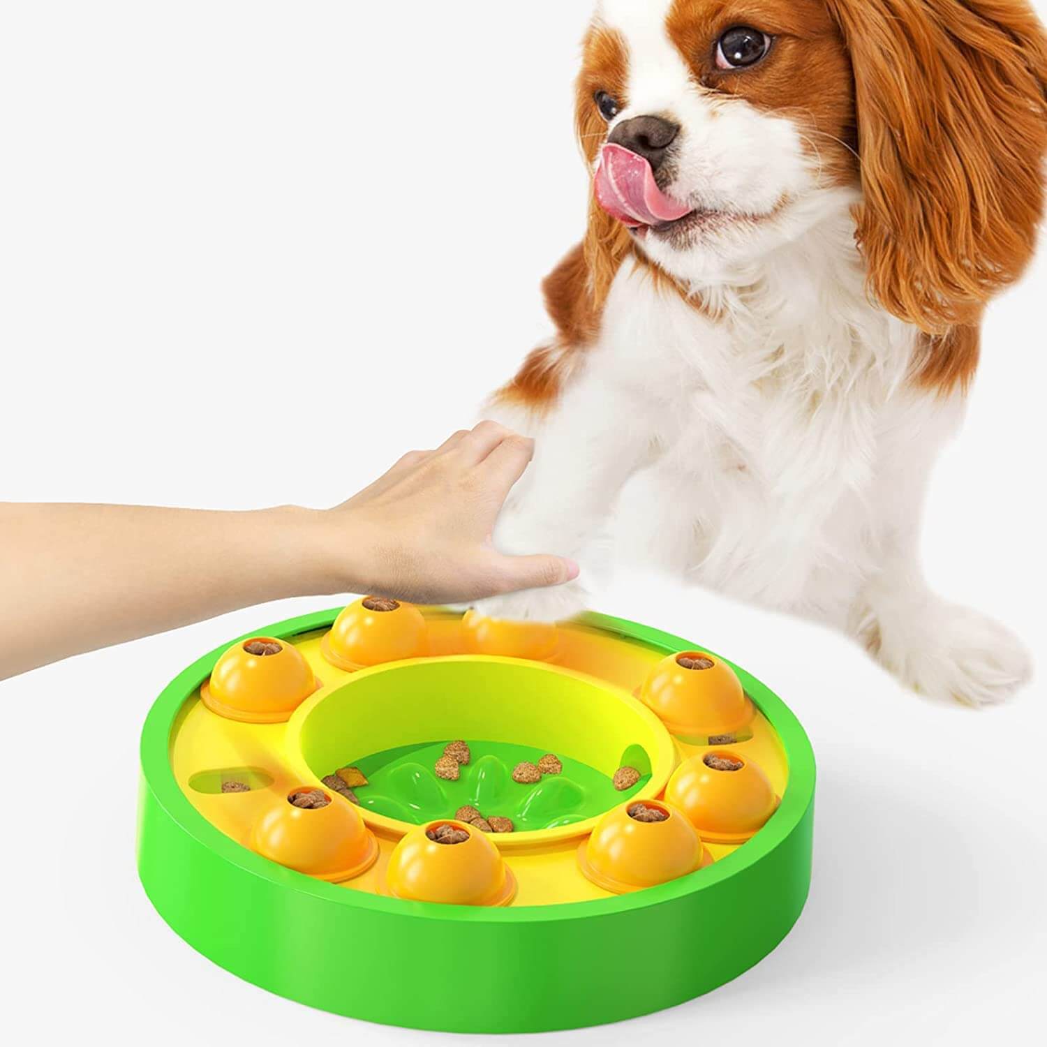 Lätt att använda: Håll tassarna för att trampa på det genomskinliga locket, de fallande godbitarna lockar snabbt till sig hundens uppmärksamhet. Täck nu över ladugårdens lock och träna hunden att leta efter godiset. Efter många upprepningar kommer din hund att förstå det korrekta sättet att använda den här produkten.