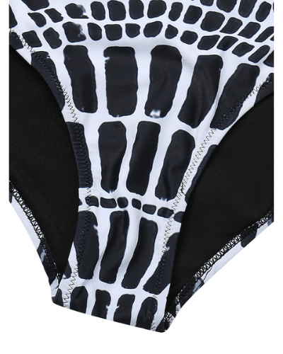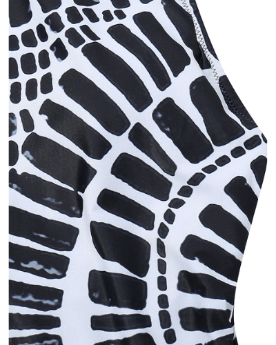 Mönstret ger en twist på en klassisk endelad siluett. Den unika korsade detaljen på baksidan är ultrafeminin, medan den enfärgade framsidan ser ut att vara samlad.