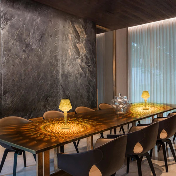 ELEGANT UTSEENDE: Med hjälp av speciell 3D-teknik ger den tydliga 3D-linjer och släta linjer med en diamantliknande effekt. Ljusets brytning genom kristalllampan är ljus, färgstark och mycket elegant.
