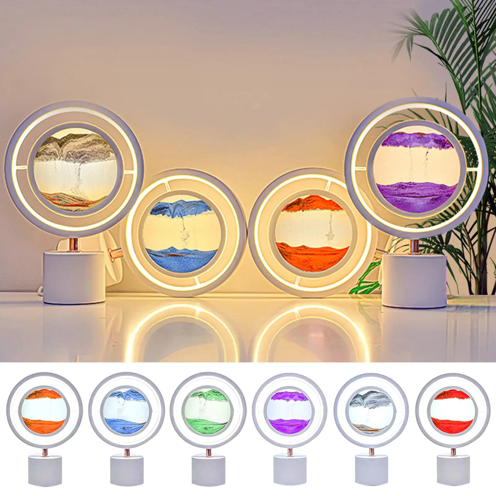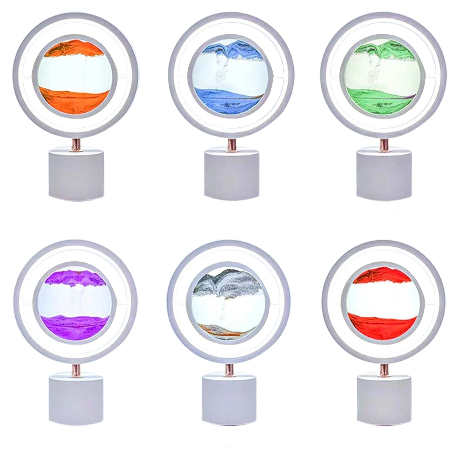 RÖRLIG SANDKONST: Den här unika lampan innehåller en dynamisk sandkonstuppvisning som ständigt skiftar och förändras, vilket skapar en lugnande och fängslande visuell upplevelse.