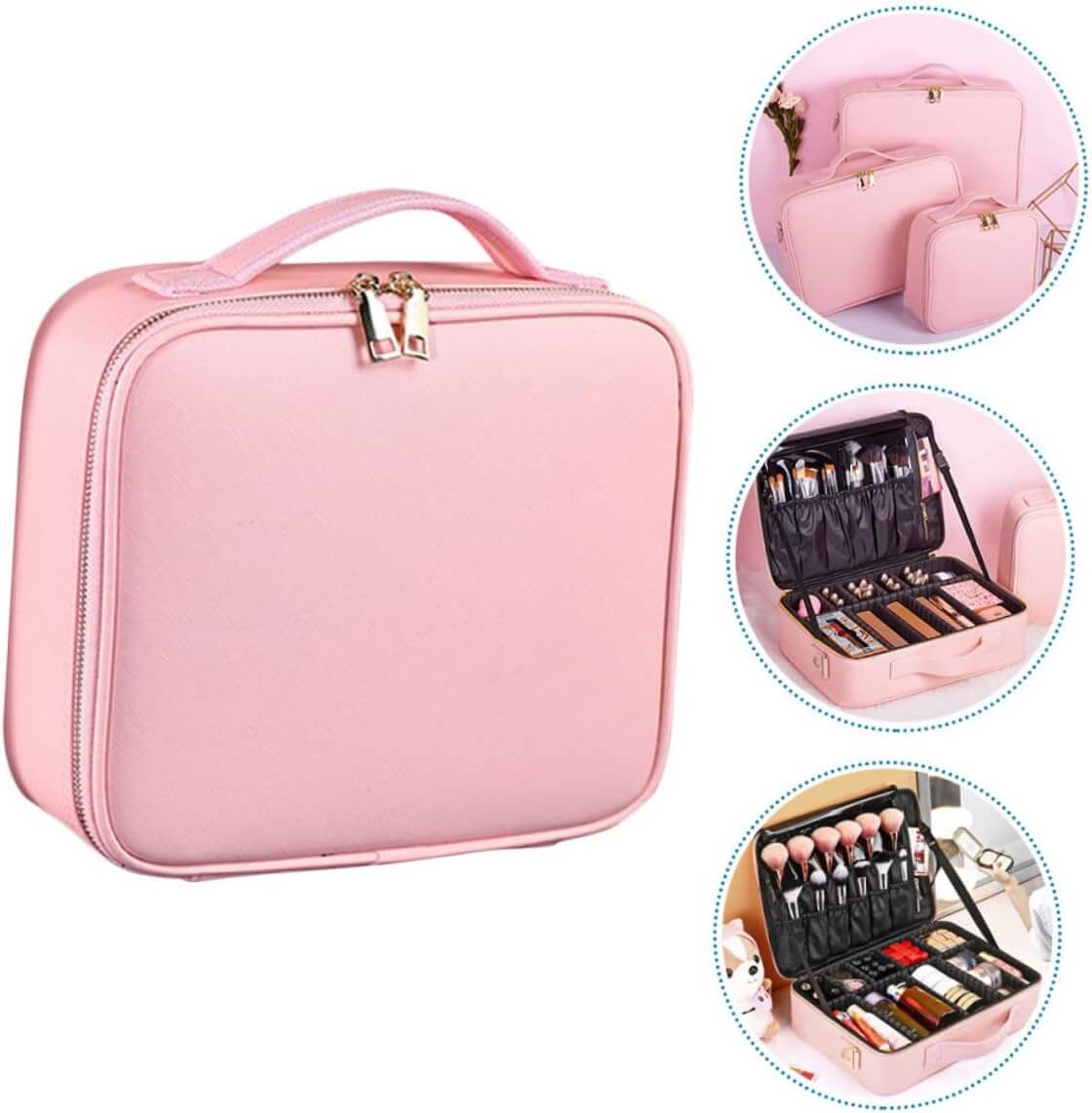 PREMIUM MATERIAL: Tillverkad av högkvalitativt, reptåligt PU-läder, har vår rese-sminkväska slitstarkt oxfordtyg och mjuk nylonstoppning för lång livslängd. Den robusta dragkedjan säkerställer upprepade användningar utan skador. Denna toalettorganisatör inkluderar inte kosmetiska tillbehör.