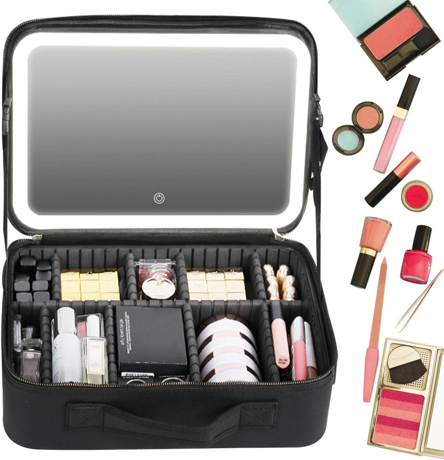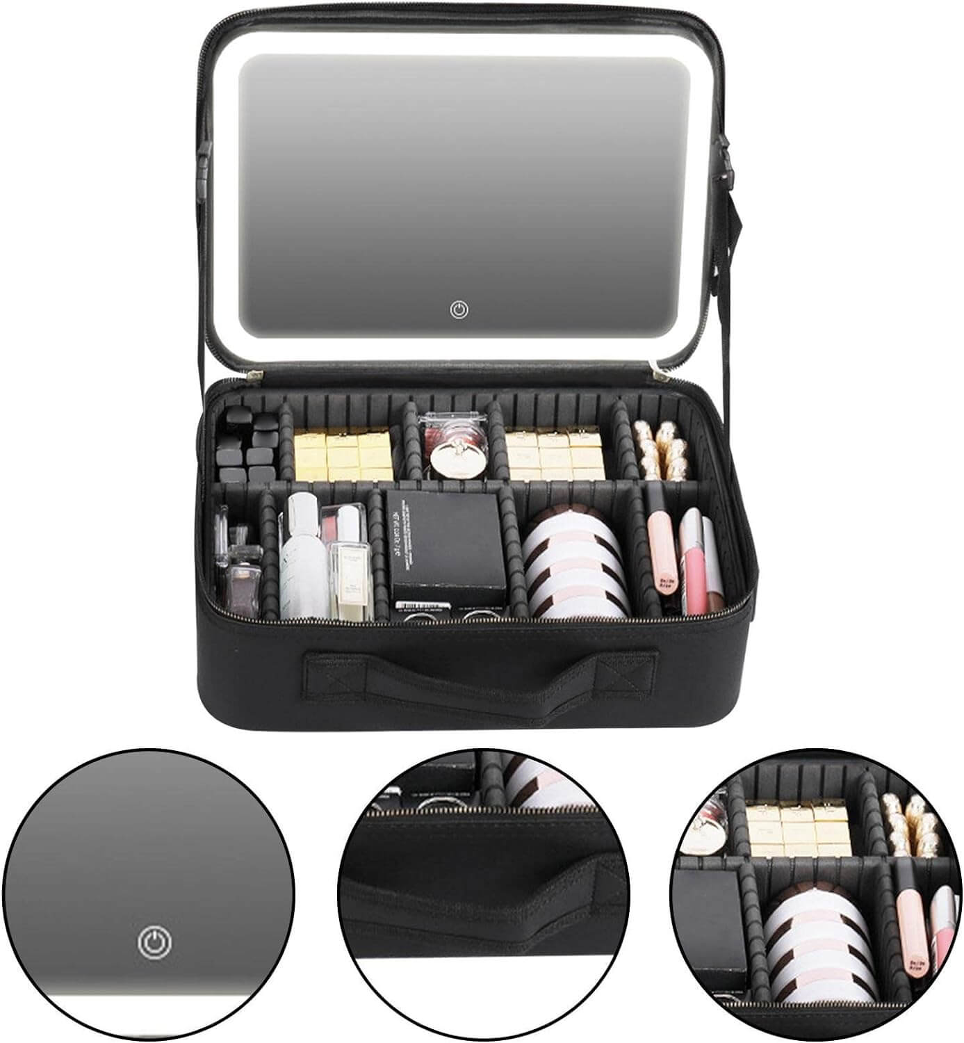 PROFESSIONELL HD LED-SPEGEL: Sminkväskan har en integrerad spegel med justerbara LED-ljus i varma, naturliga och kalla toner. Med en USB-laddare ger den sann-bright ljus för en felfri sminkapplikation dag eller natt. Dess eleganta, stilfulla design gör den idealisk för hemma- eller resebruk och passar perfekt i din resväska, handbagage eller resväska.