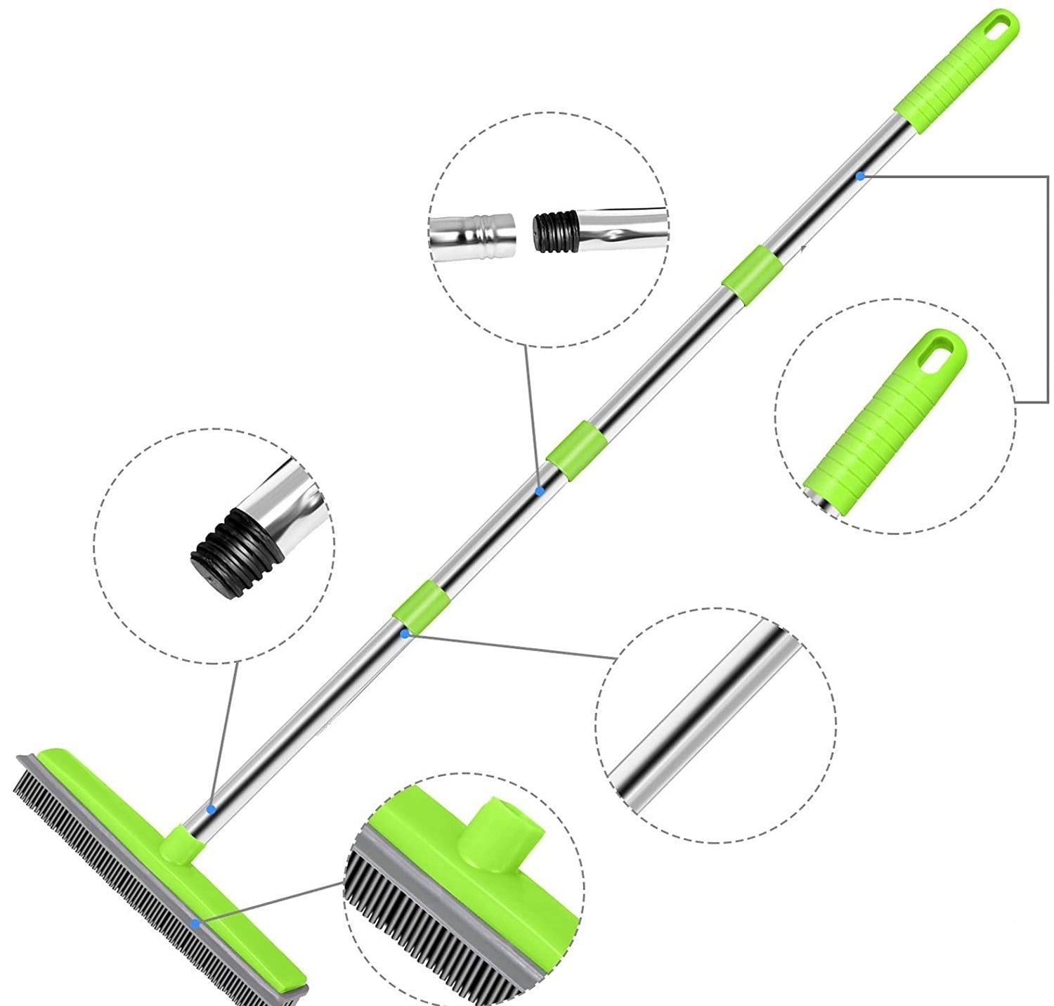 JUSTERBAR HÖJD: Våra gummiborstar har slitstarka förtjockade stänger av rostfritt stål för enkel installation och borttagning. Justerbara längder passar människor i olika höjder att använda. Tillräckligt lång för att långa vuxna ska kunna sopa utan att böja sig ner. Den kan också förkortas för att underlätta för barn att använda den.