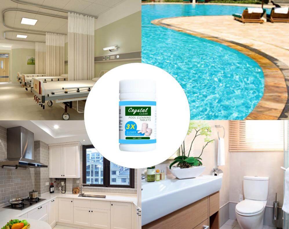 Tabletterna används för rengöring av simbassänger och bubbelpooler och lämnar inga rester kvar i poolen. Tabletterna bidrar också till att minska de totala underhållskostnaderna för poolen.  Superlätt att använda gör det enkelt att underhålla dina simbassänger.