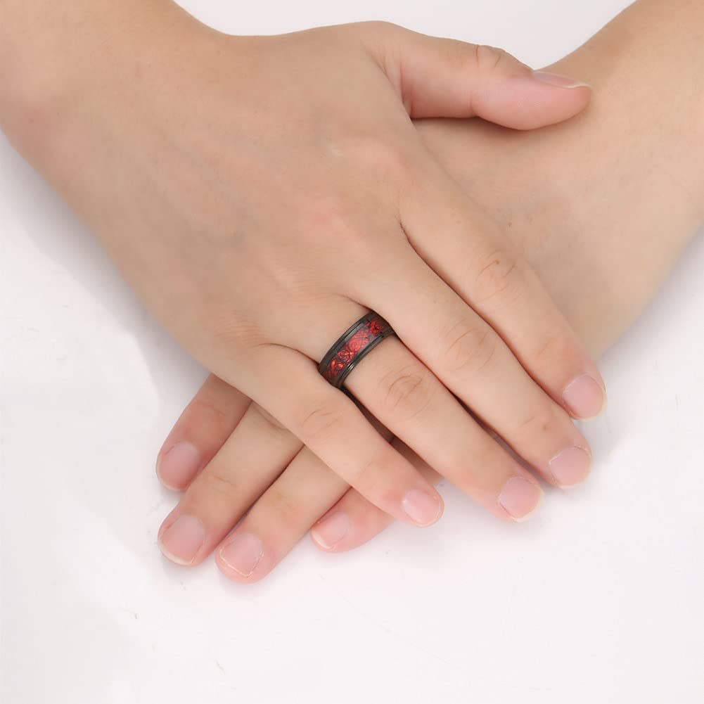 • 8MM Celtic Draken Tungsten Carbide Ring - Perfekt bredd, lämplig för både män och kvinnor. Unik ihålig keltisk drake struktur inlagd med färgglad kolfiberbakgrund, vilket är en extraordinär bröllopsring. Så vacker och elegant.