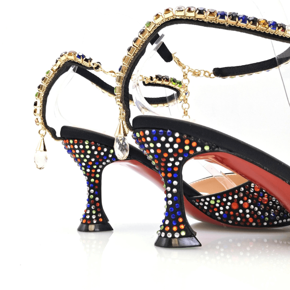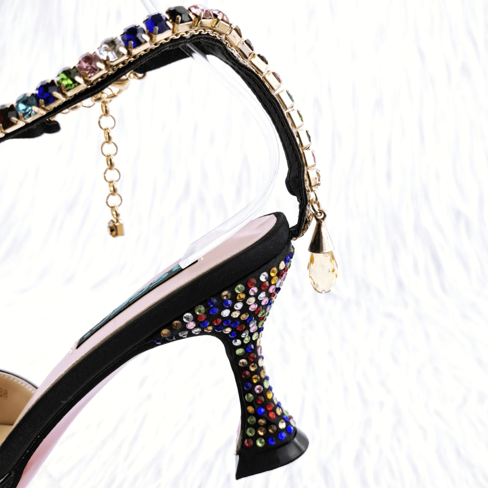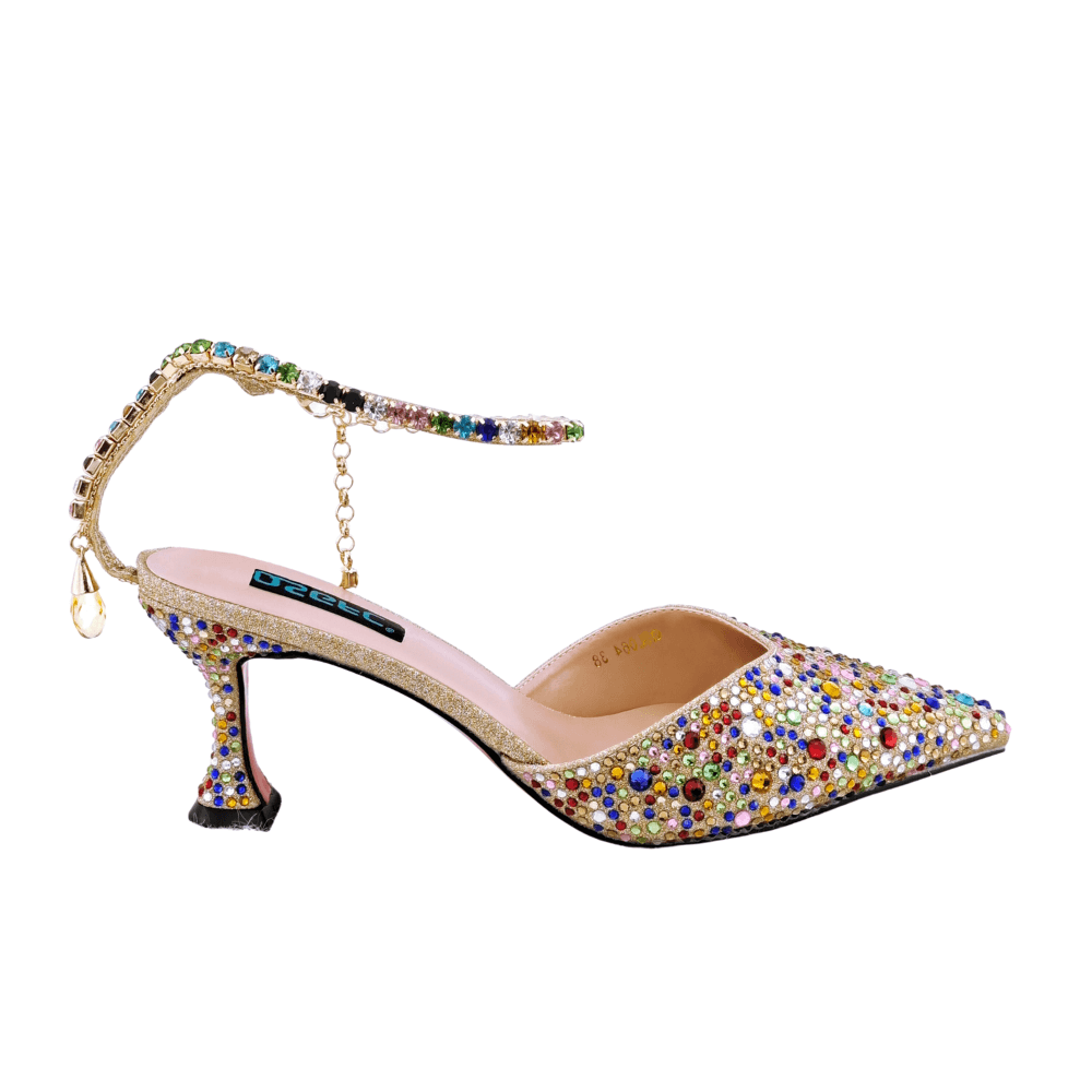 Med en klackhöjd på 7,5 cm förlänger dessa klackar dina ben och visar upp din perfekta figur. De gnistrande strassstenarna lägger till en touch av elegans och glamour, vilket gör dem perfekta för fester, bröllop, intervjuer eller vilken tillställning som helst där du vill lysa. Dessutom parar de sig problemfritt med handväskor för att fullända din eleganta look. Missa inte chansen att kliva in i stilen - skaffa dina skimrande strasshögklackar nu och lys som stjärnan du är!
