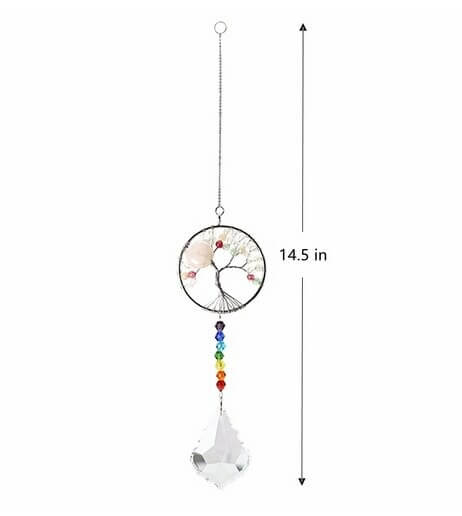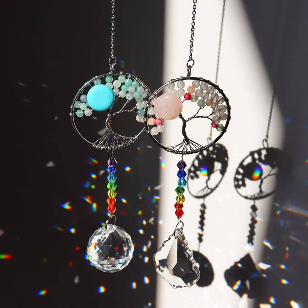 • LIVETS TRÄD OCH KRISTALLER: Gör ditt fönster unikt och vackert med denna solfångare med livets träd. Den här prydnaden består av kristallkulor som kan ge en vacker reflektion och regnbåge i solljus.