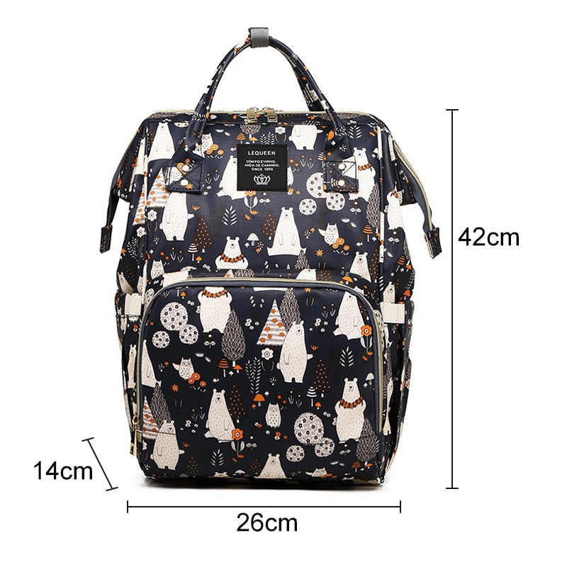 Maternity Nappy Bag är utformad för att göra ditt liv enklare och är en mobil skiftstation som ger bekväm tillgång till alla ditt barns nödvändigheter. Med justerbara remmar kan ryggsäcken dras åt eller lossas för att passa olika kroppstyper. Själva väskan har utformats med dolda fack för flaskor och andra saker som du inte vill ska gå vilse i din packning.
