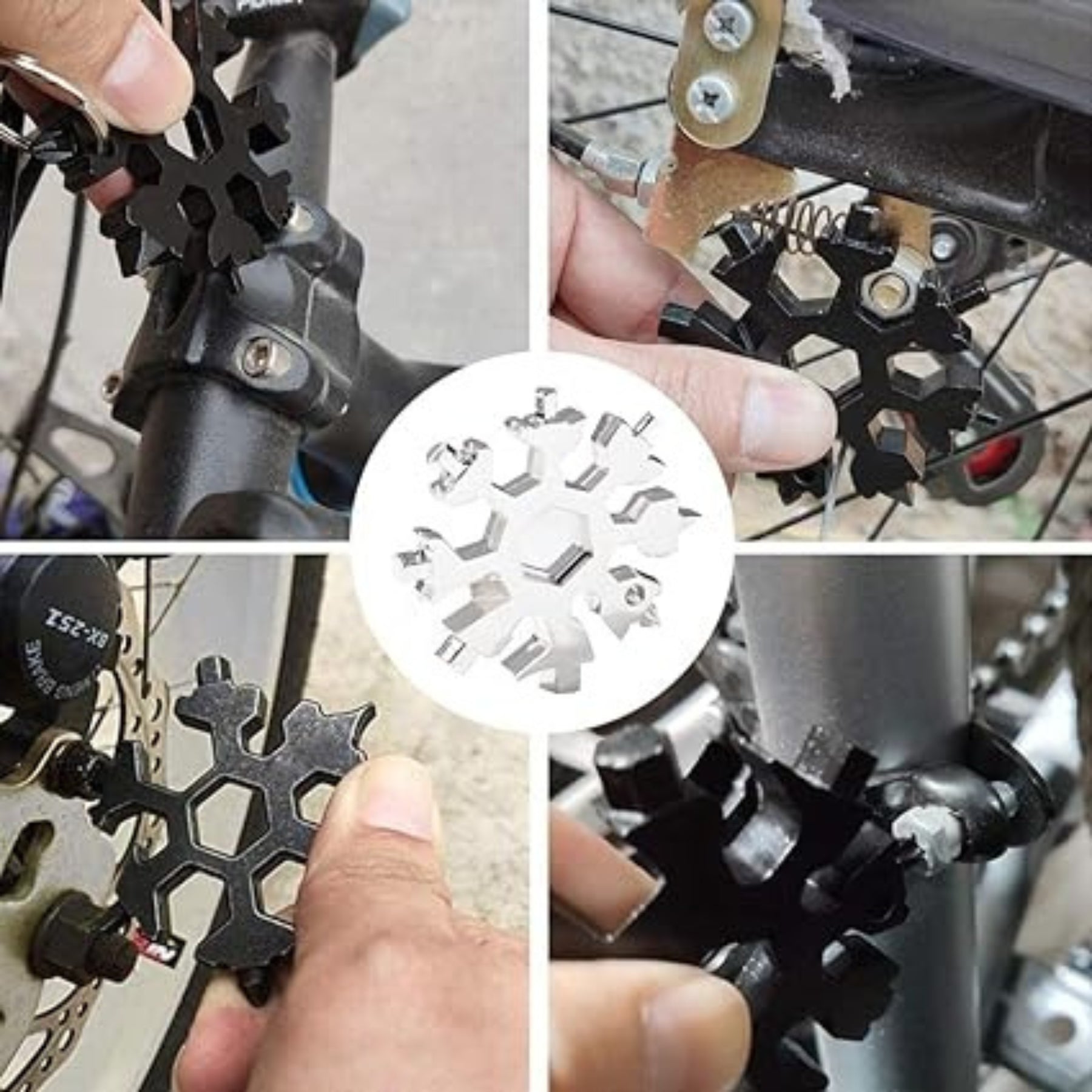 Upplev bekvämlighetens kraft i din handflata. Vår 18-i-1 Skruvmejsel Snöflinga Nyckelring är den ultimata multiverktyget som anpassar sig efter dina behov. Med sin kompakta storlek (2,52 "i diameter) och lätta konstruktion är detta fickformat snöflingemultiverktyg mycket portabelt. Oavsett om du är hemma, på väg eller utforskar den stora utomhusen är denna nyckelring ditt pålitliga tillbehörsverktyg.