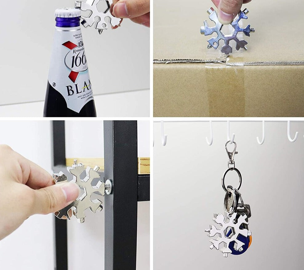 OMFAMNA OÄNDLIGA MÖJLIGHETER MED VÅR 18-I-1 SKRUVMEJSEL SNÖFLINGA NYCKELRING!