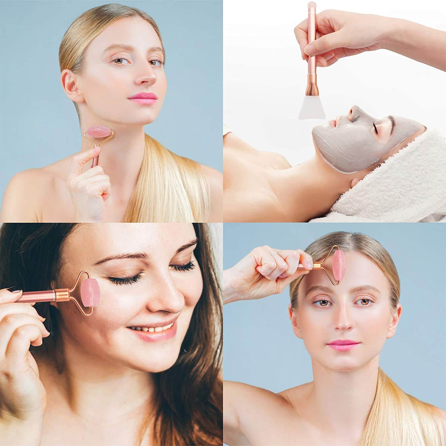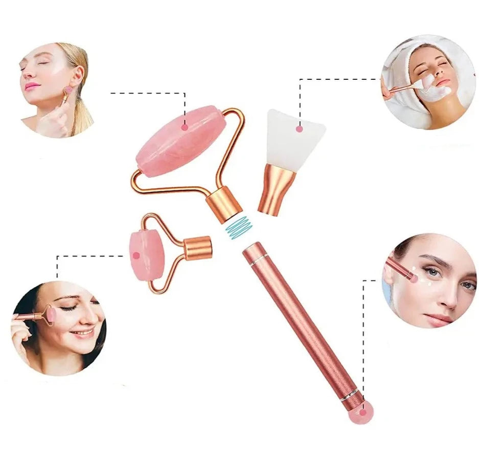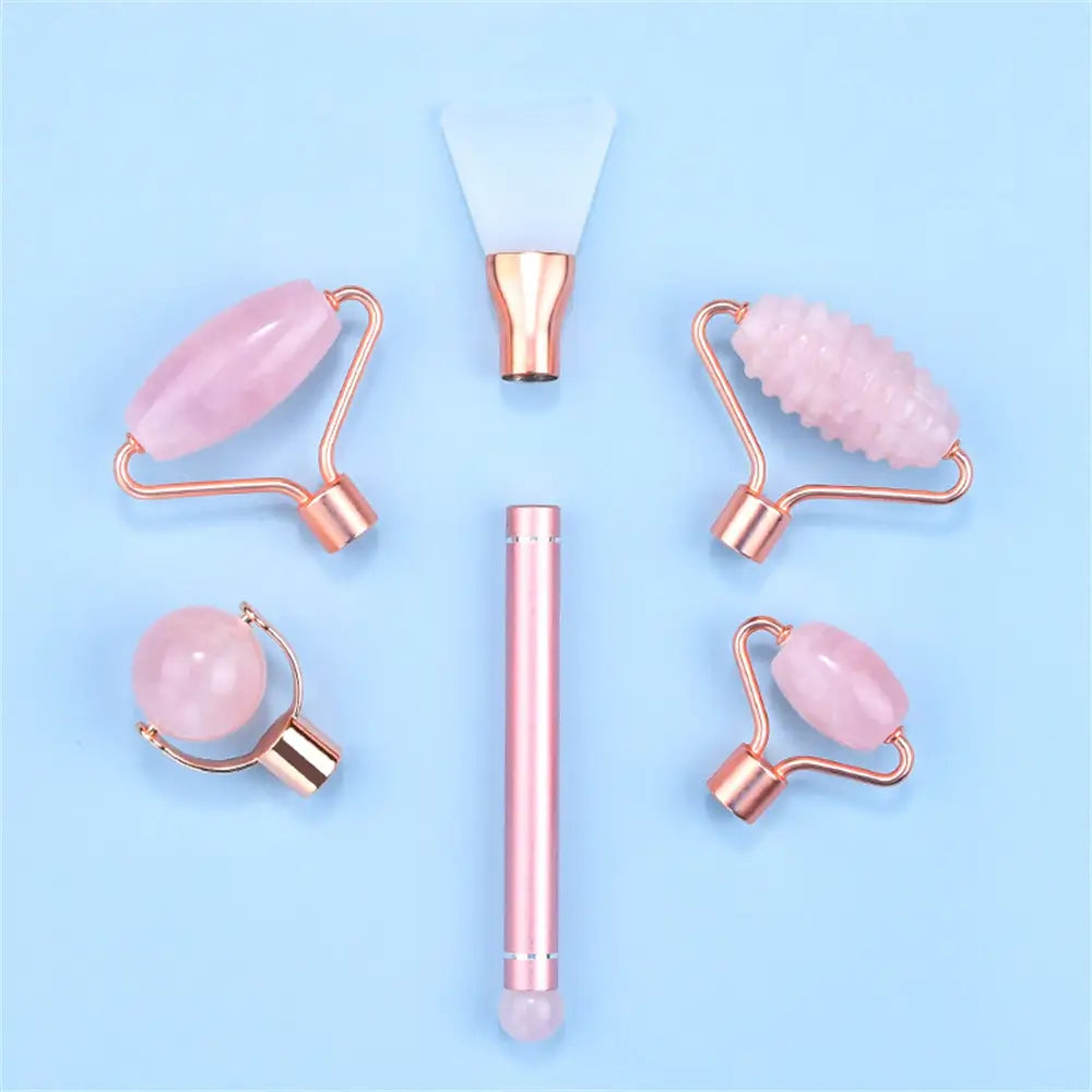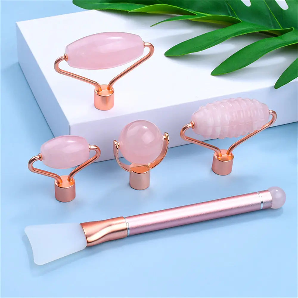 UPPTÄCK DIN NATURLIGA LYSTER MED VÅRT 5 I 1-KIT MED ROSENKVARTSROLLER