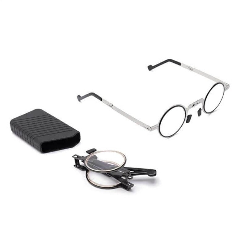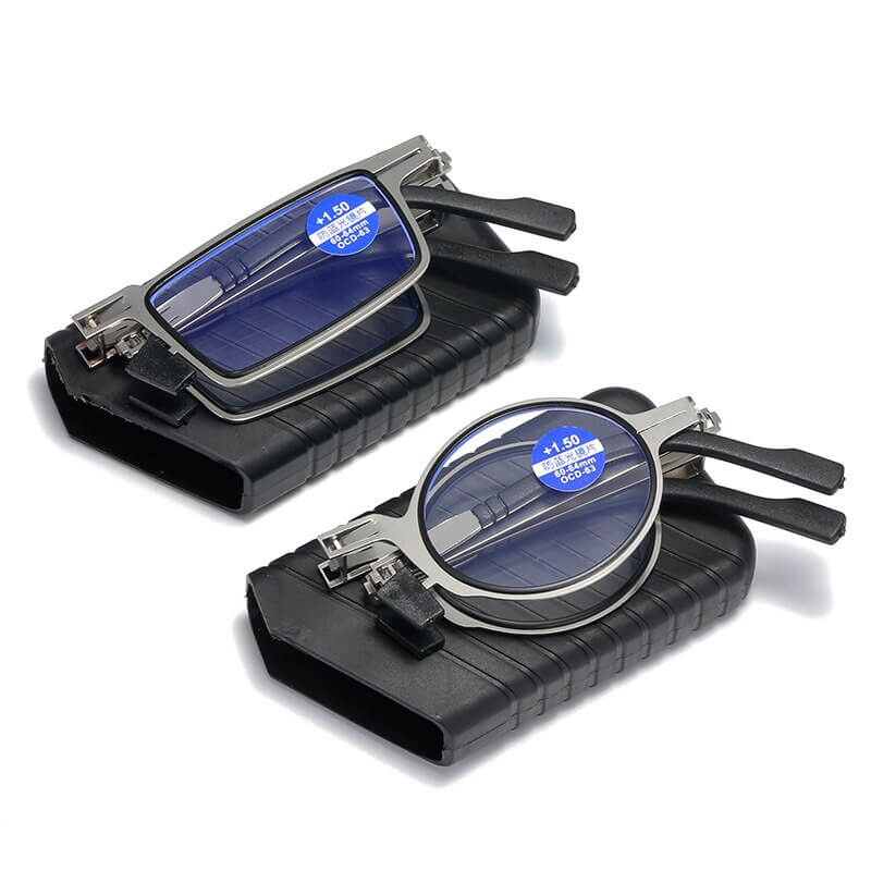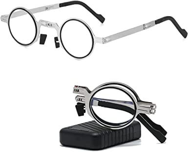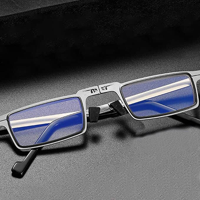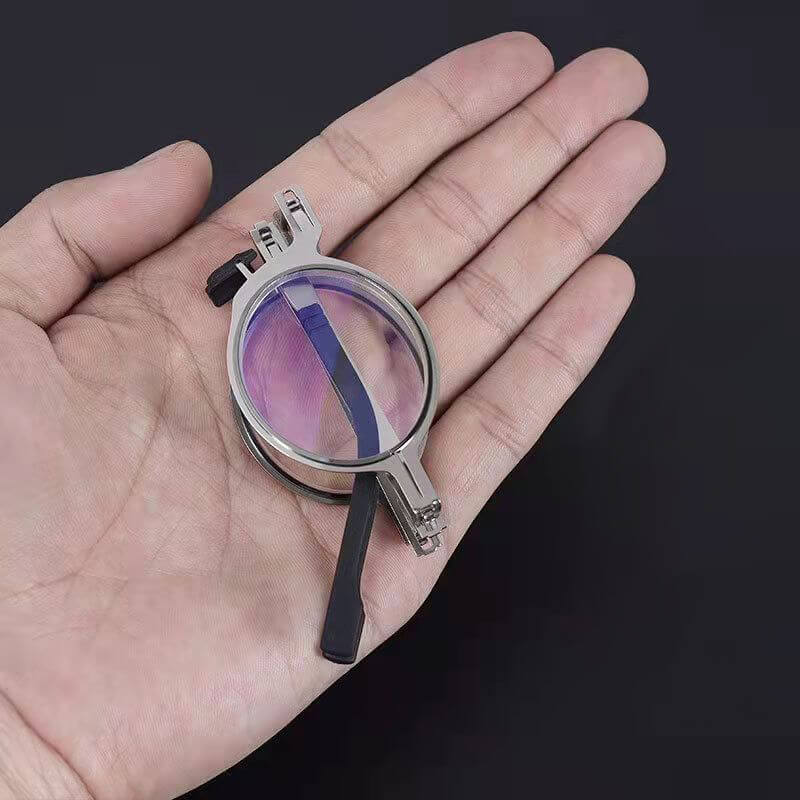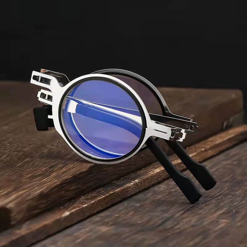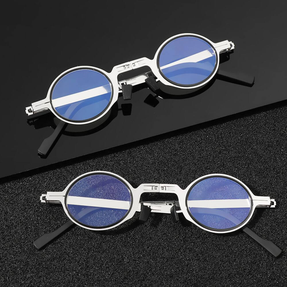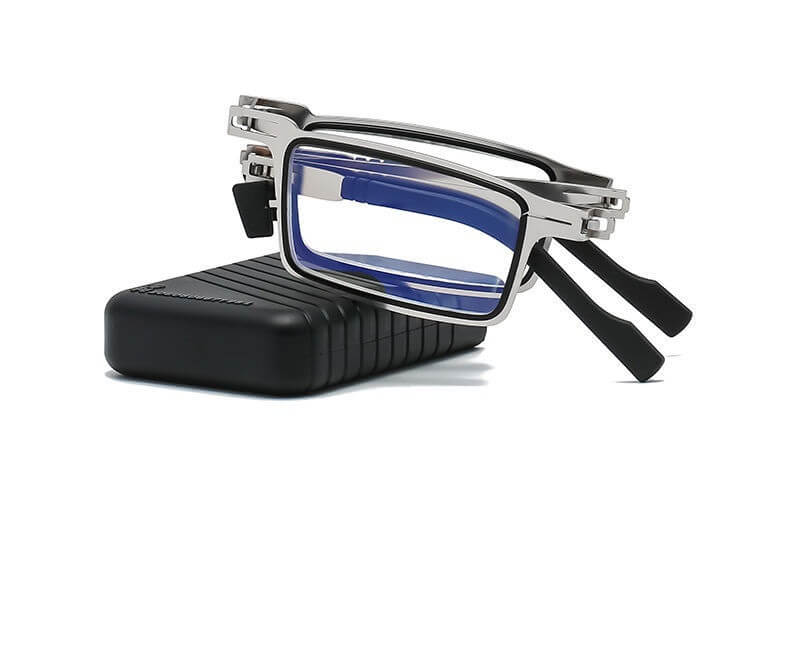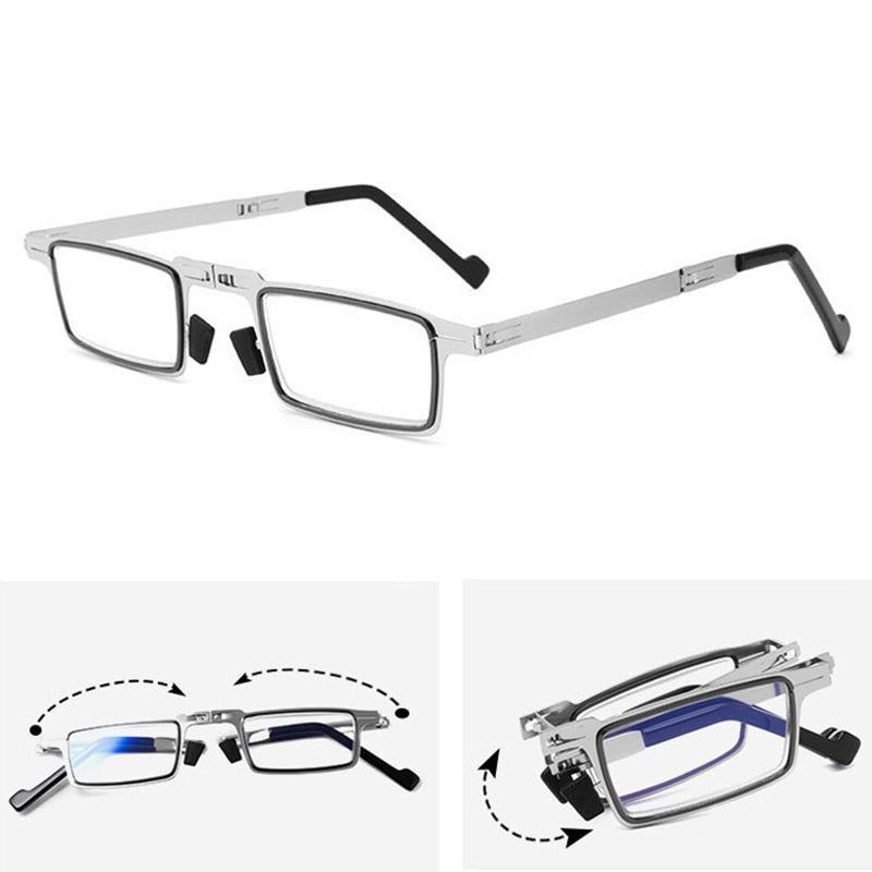 HOPFÄLLBAR OCH ULTRALÄTT: Glasögonen är tillverkade av en ram i rostfritt stål och en lins i polykarbonat, en vikbar brygga och teleskopiska tempel för enkel vikning och kompakt förvaring. Låter dig ta med dig till var som helst.