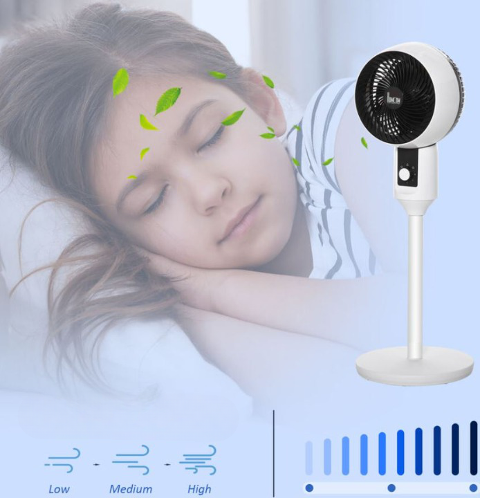 Håll dig bekvämt sval under de varma sommardagarna med denna luftcirkulationsfläkt för hushållsbruk! Fläkten är perfekt för hem- och kontorsbruk och har tre variabla hastighetsinställningar för personlig komfort. Med 70° oscillation och 90° vertikal lutning kan du rikta luften till en specifik punkt.