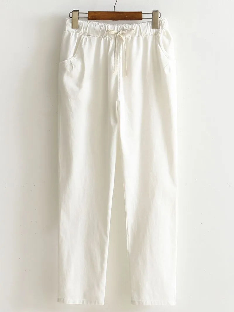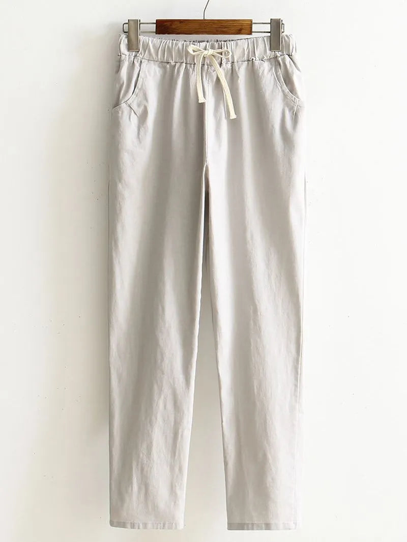 KVALITETSMATERIAL: Tillverkade av premium bomullslin prioriterar dessa byxor din komfort med sin lätta och luftiga design, vilket gör dem till ett idealiskt val för sommartid och vardagsbruk.