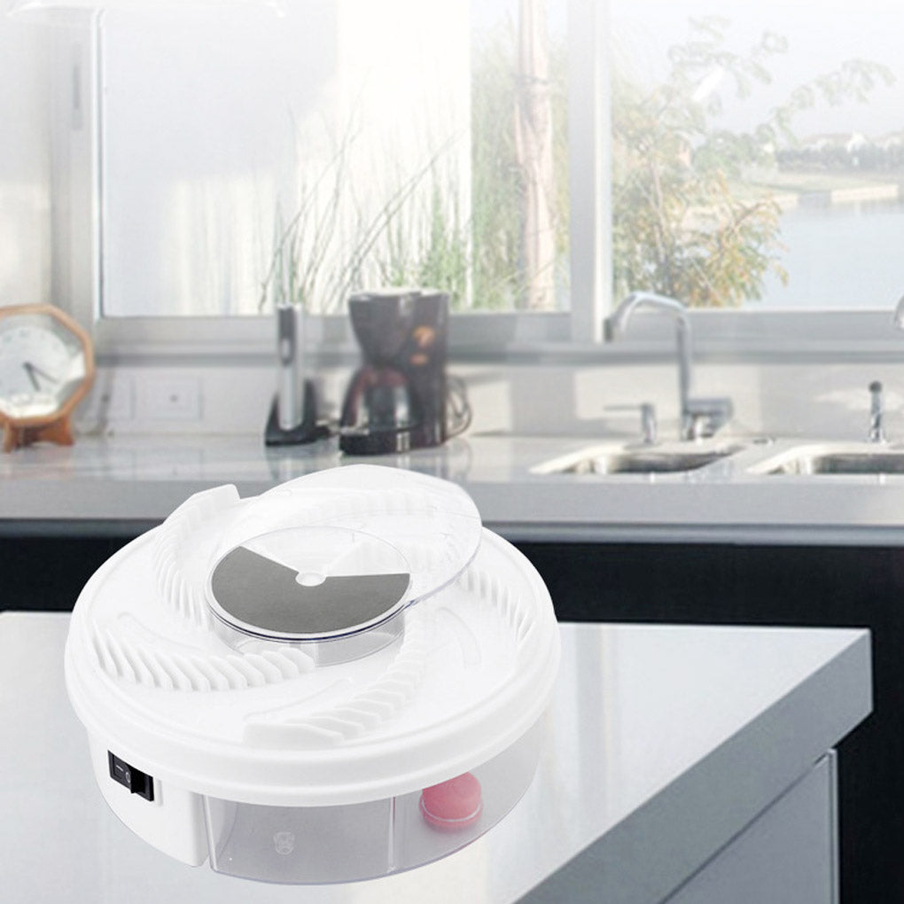 Denna elektriska roterande flugfälla fungerar genom att locka flugor med en liten bit bete. Rotationsanordningen fångar dem och fångar dem inuti när de landar på betet, ingen flykt alls! Det är det enklaste, giftfria och mest hygieniska sättet att fånga och avlägsna flugor från ditt hem.