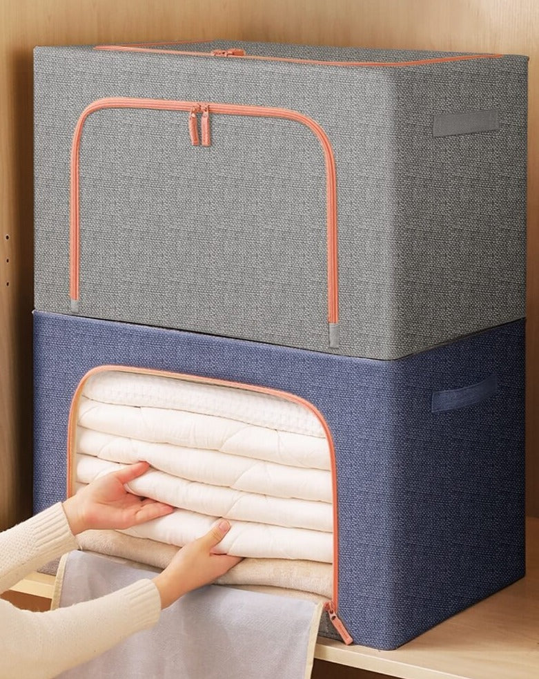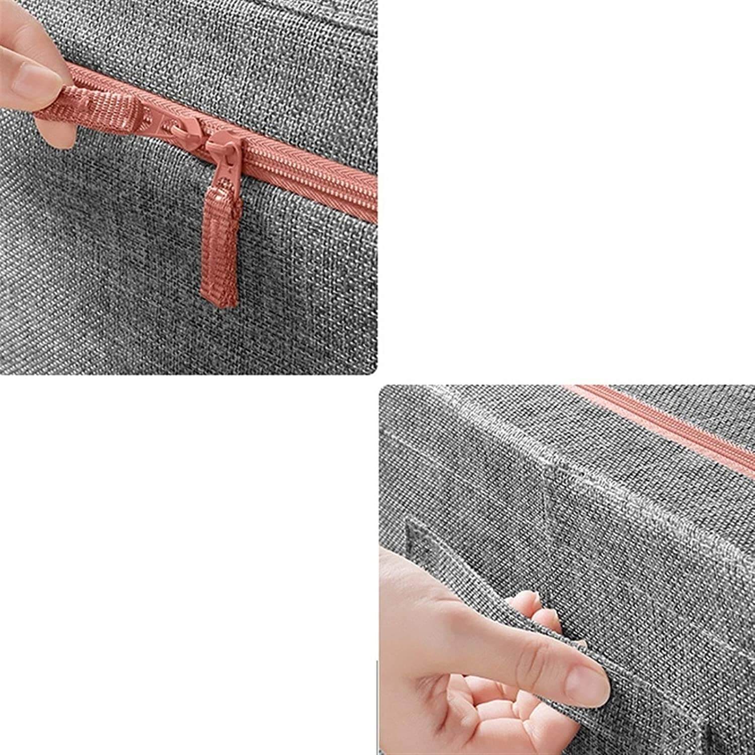 - REINFORCED HANDLED OCH DOUBLE ZIPPER - Dubbelt tyg är sytt i handtaget för att säkerställa ett starkt grepp och lätt att bära eller dra av och ur hyllor. Den här förvaringsboxorganisatorn är utrustad med dragkedja i rostfritt stål, en pull-up smidig, slitstark, dubbelriktad dragkedja som enkelt kan glida in i stängningen när du använder den.
