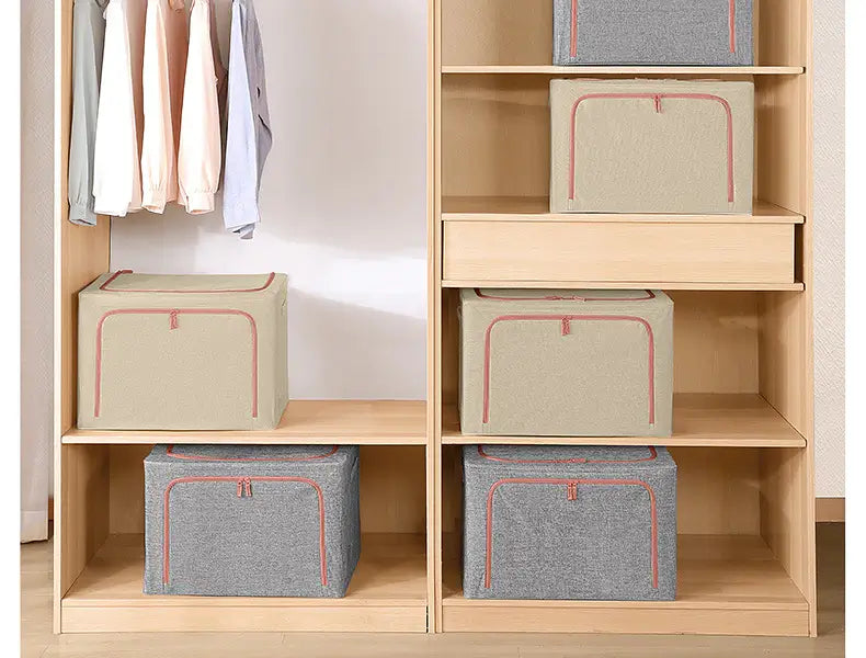 - STYRKANDE ANDNINGSBART TYG - Vår förvaringslåda för kläder använder Oxford-väv av hög kvalitet. Oxford-tyg gör den robust och dammtät, luktfritt linne främjar ventilation och skyddar dina förvarade artiklar från fukt och damm, skadedjur och vattenskador.