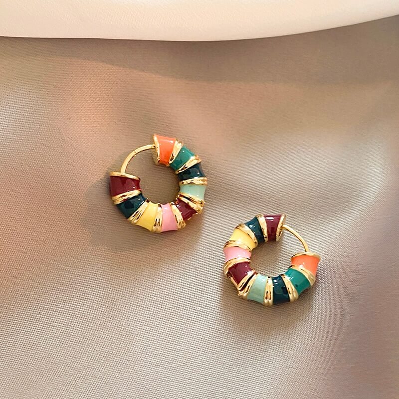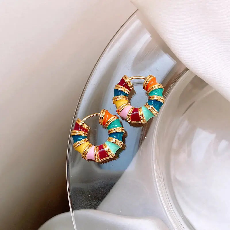 LÄGG TILL EN FÄRGKLUT I DIN OUTFIT MED VÅRA FÄRGLADA RETRO HÄNGANDE ÖRHÄNGEN!