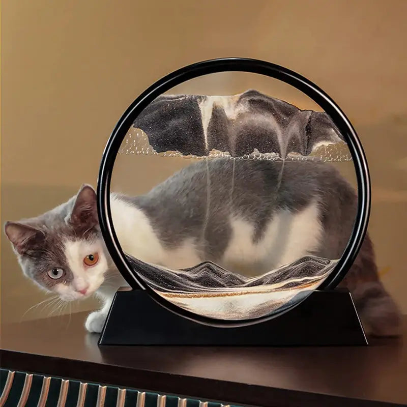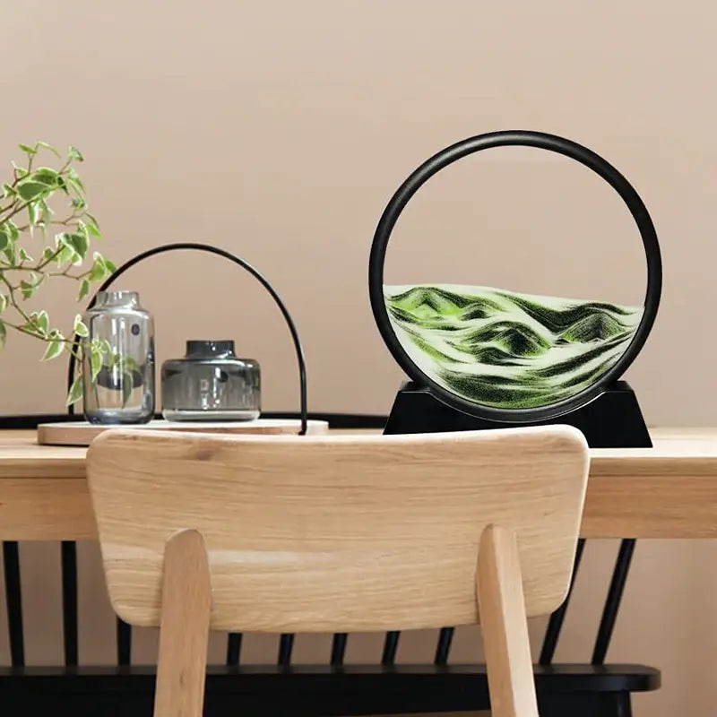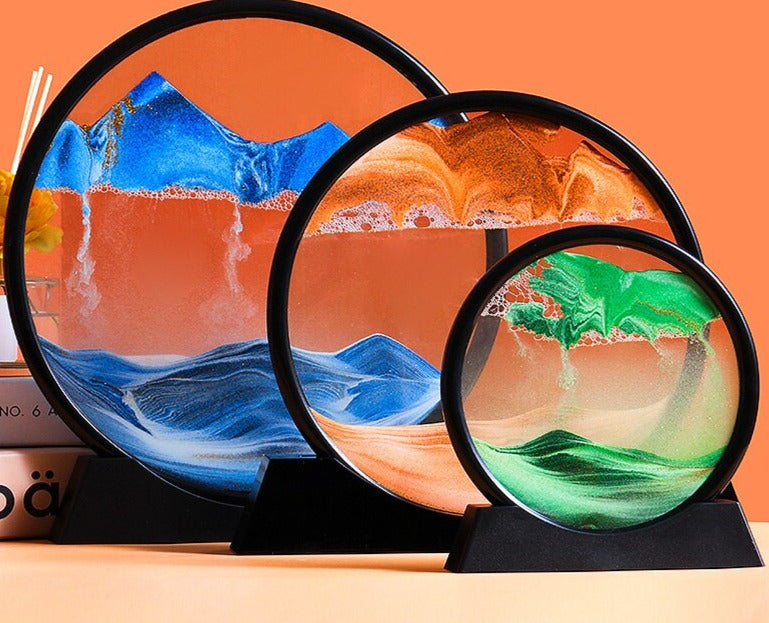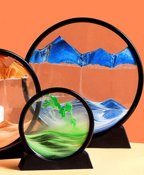 AVKOPPLING: Det är bara att vrida på målningen och se hur den färgglada sanden vackert skiftar för att skapa fascinerande mönster och former. När den roterar kommer du att svepas med i en lugnande känsla som garanterat ger avkoppling efter en lång dag.