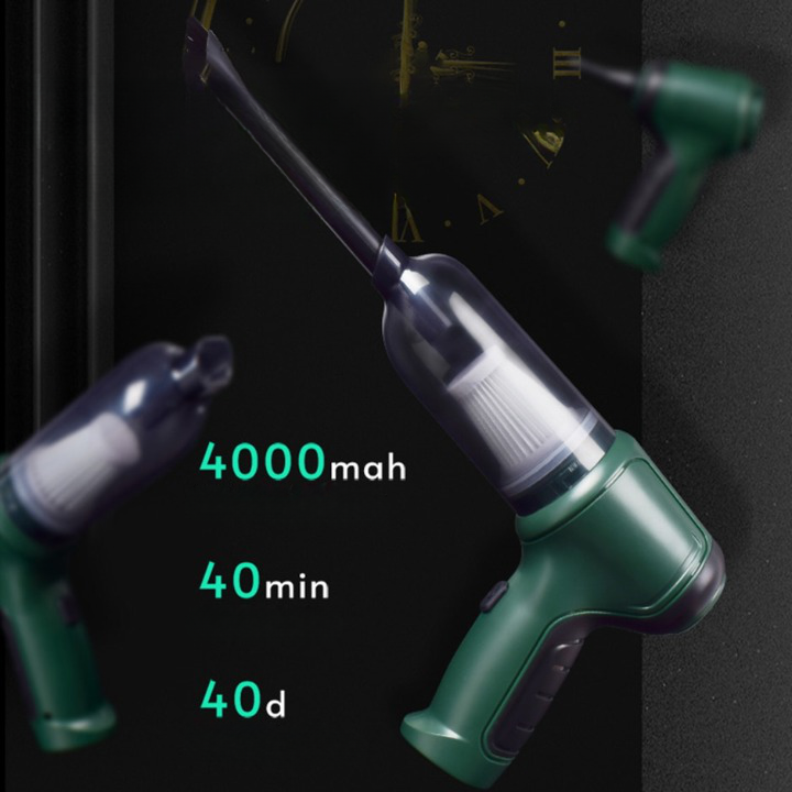 Rengör varje svåråtkomligt hörn av din bil, ditt hem, elektronik och annat med den här handhållna sladdlösa dammsugaren! Utformad för allsidig rengöring utan några återvändsgränder. Dess praktiska design kommer med löstagbara tillbehör för att möta olika behov.