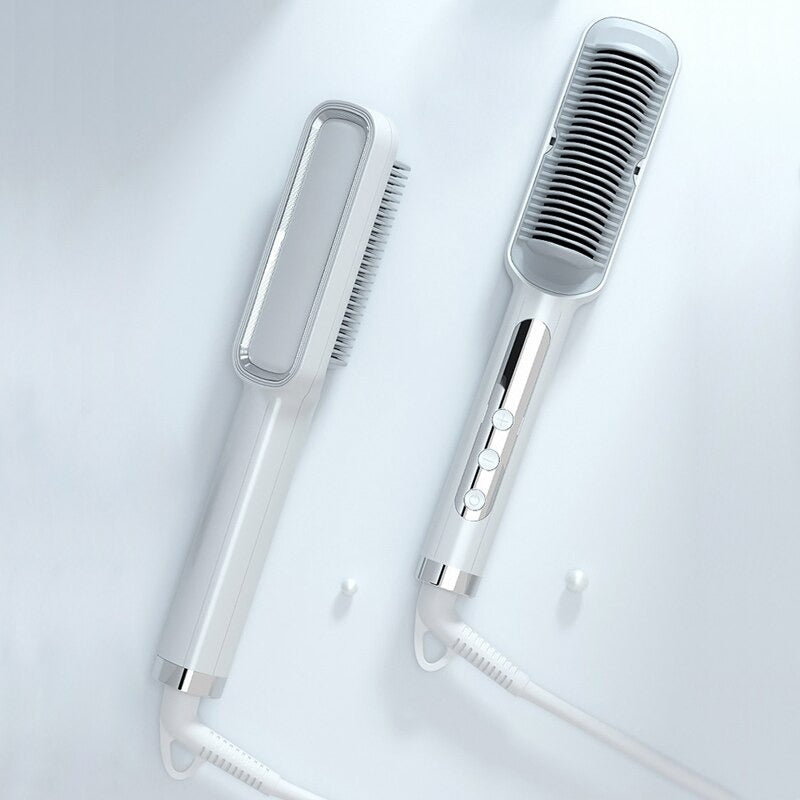 VERSATILE 3 IN 1 DESIGN: Allt du behöver för ett vackert och friskt hår, en kam för att reda ut håret, en hårborste, en plattång, en skäggplattång och en hårmassageapparat med anjoner, allt i ett! Utformad med en 360-graders roterande baskabel som gör att du kan styla håret från alla vinklar och få det mest professionella resultatet; en Smart enkel one-touch-knapp och avancerad flytande kristalldisplay gör att du enkelt kan styra och övervaka dess temperatur