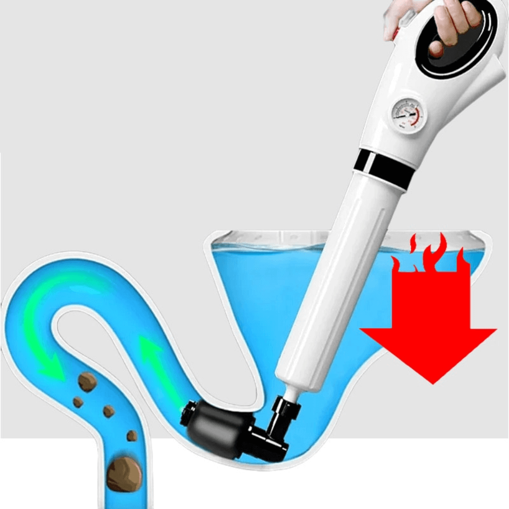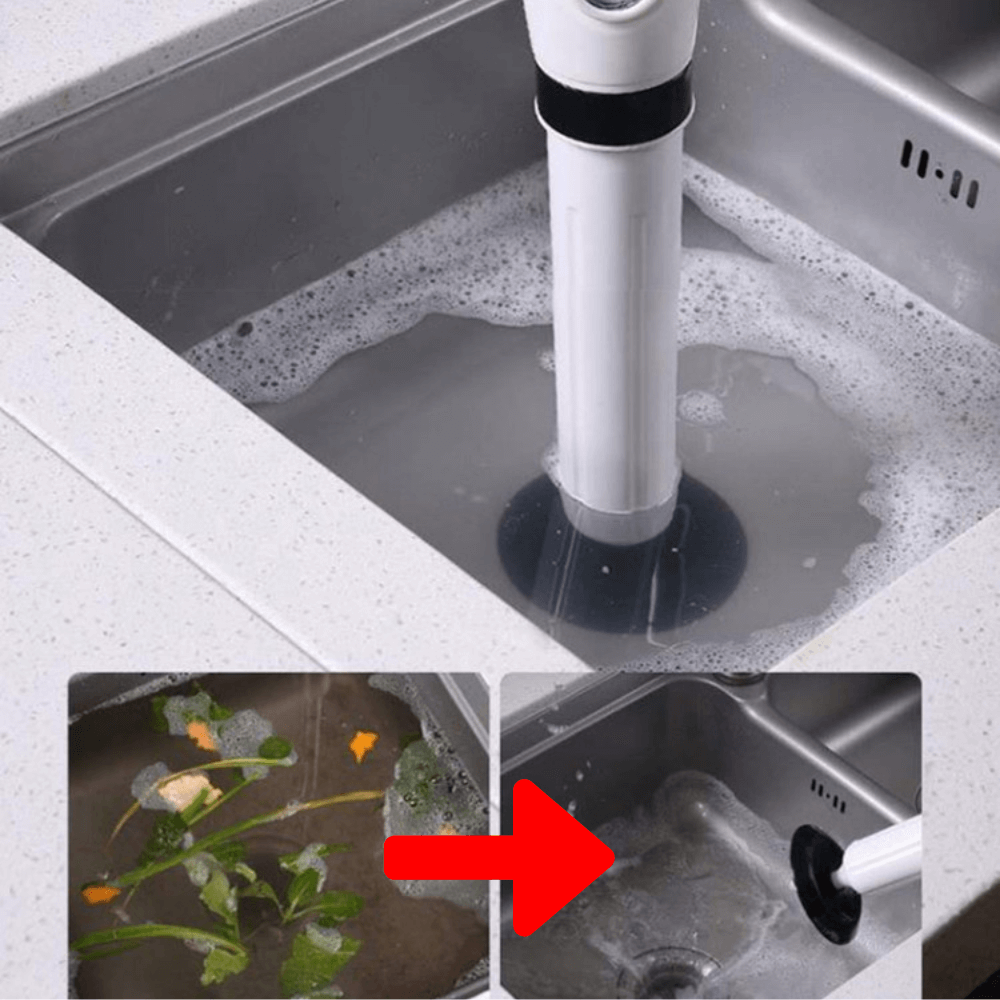• HÖGTRYCKS UTLOPPSPLUNGER: Dra nytta av fördelarna med dess återanvändbara, kompakta och kemikalie-fria design. Denna avloppsrenare använder högt tryck för att erbjuda ett säkert och effektivt sätt att avtäppa avlopp, vilket säkerställer din familjs och miljöns välbefinnande.