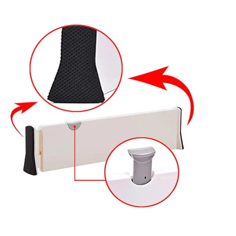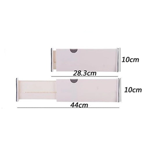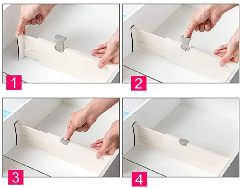 Säg hejdå till röran och hej till organisation med den ultimata lösningen för dina lådor. Den justerbara lådavdelaren ger funktionalitet och stil till din bostad. Den expanderbara och justerbara designen möjliggör enkel installation med bara en enkel glid- och klickmekanism. Inga verktyg eller lim behövs! Lyft bara spaken, placera den i lådan, justera så att den passar och lås den på plats.