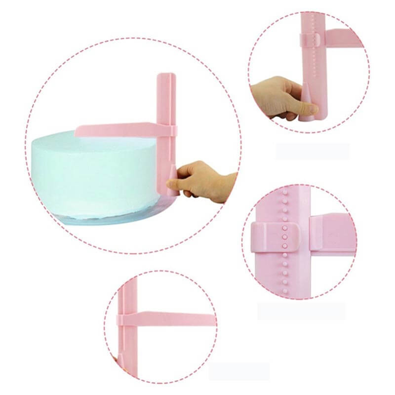 Den jämnar samtidigt ut toppen och sidorna på din tårta, och toppen är lätt justerbar för att passa olika höjder. Den har också en bred bas för att hålla den stabil medan du skrapar. Tillverkad av plast av livsmedelskvalitet, dekorera med självförtroende med det här lättanvända proffsverktyget.