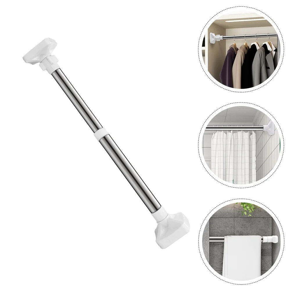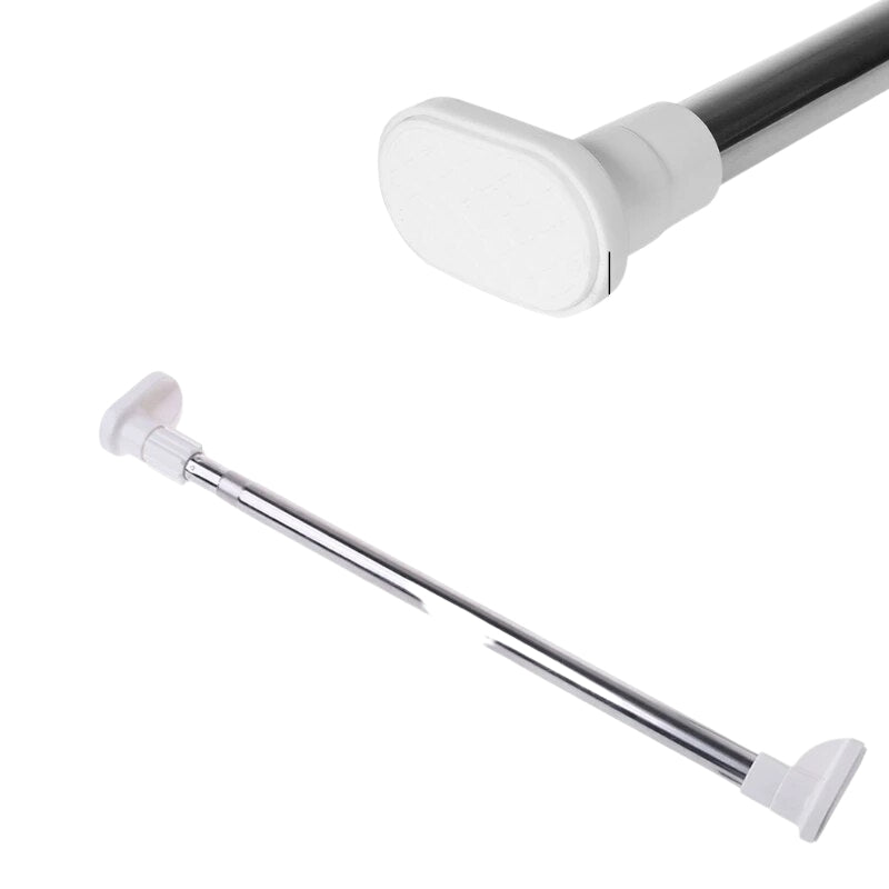 Upptäck en värld av bekvämlighet med vår justerbara teleskopiska klädhängare. Designad för enkelhet och funktionalitet erbjuder denna stång en revolutionerande lösning för att maximera ditt garderobs- och hyllutrymme utan ansträngning. Tillverkad av hållbart rostfritt stål ger dess eleganta design inte bara en touch av sofistikering utan också långvarig styrka. Inga skruvar, inga hål – installation är en lek med spännstången. Bara förläng, dra och vrid för att skapa ditt privata utrymme, vare sig det är för ombyte, sömn eller dusch.
