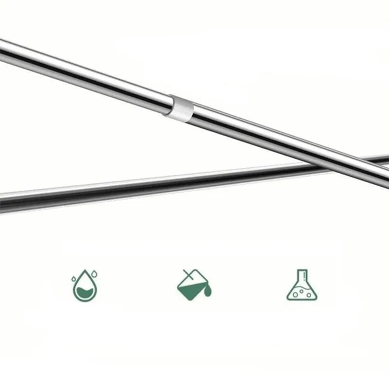 KORROSIONS- OCH ROSTBESTÄNDIG: Byggd för att hålla, är vår teleskopiska klädhängare tillverkad av hållbart rostfritt stål och ABS med en borstad finish. Den elektrostatiska tekniken förebygger rost, vilket säkerställer en jämn och utsökt känsla och minskar friktionen och eventuell upphängning.