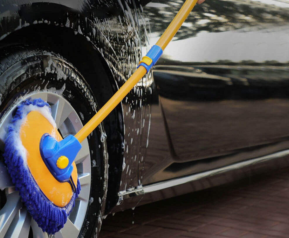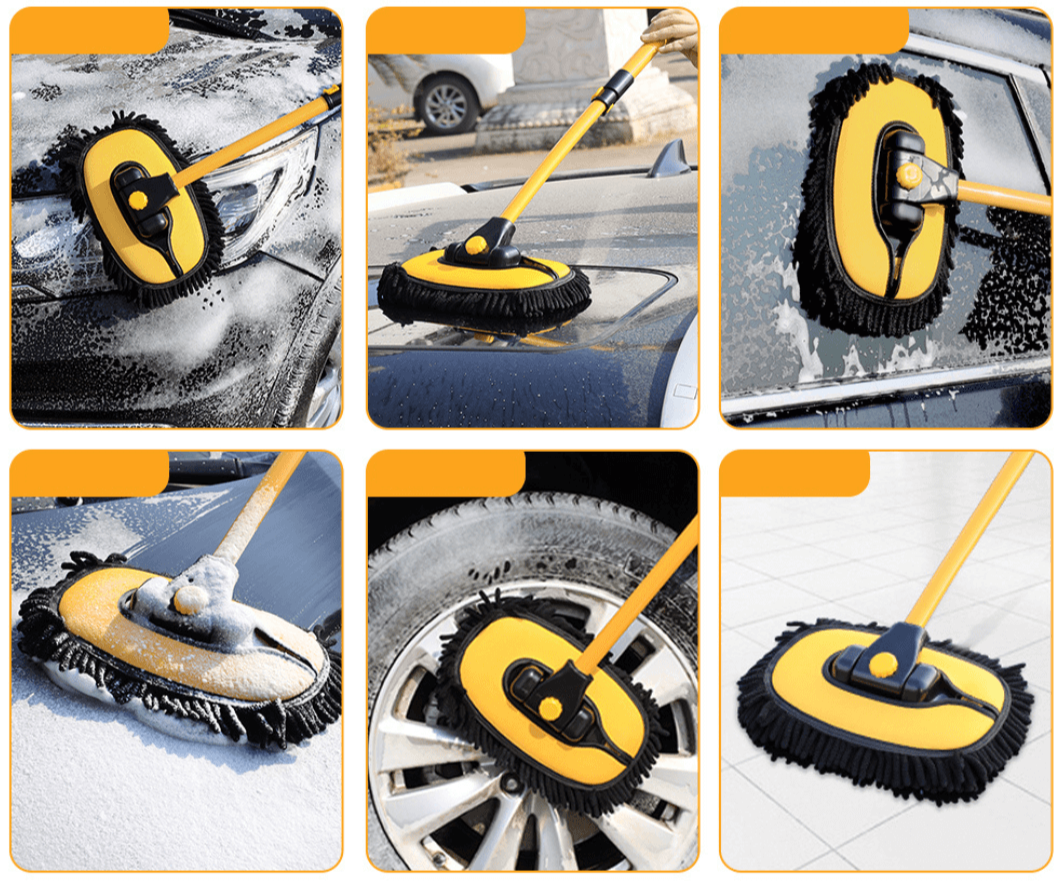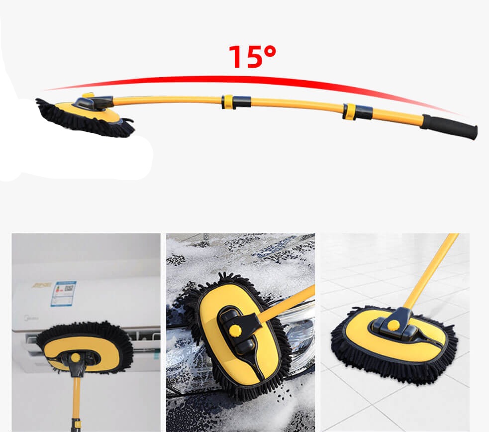 BREDT ANVÄNDNINGSOMRÅDE: Denna mångsidiga rengöringsborste med justerbart teleskopskaft är inte begränsad till bilrengöring. Den är perfekt för rengöring av fönster, utomhusskjul, barnrutschbanor, utomhusstrukturer och olika hemtillbehör.