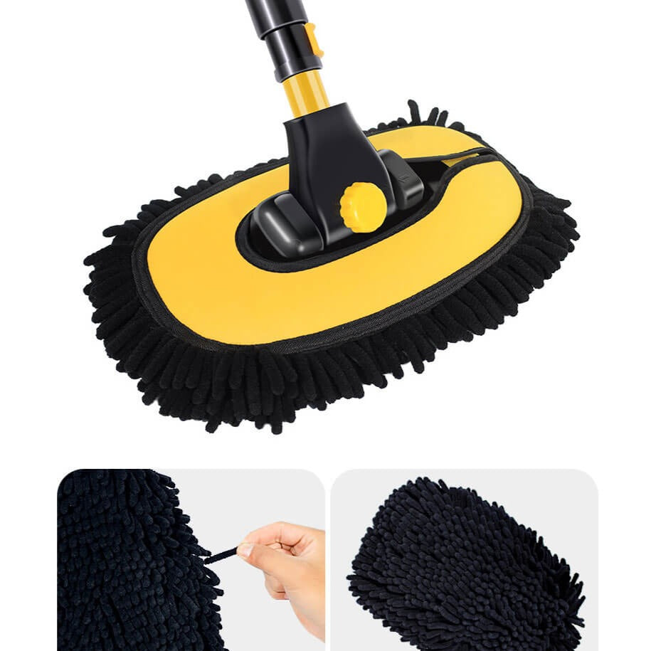 INGA REPOR: Det justerbara teleskopborsthuvudet är tillverkat av extremt mjuk mikrofiberchenille, vilket garanterar en repfri rengöringsupplevelse. Dess starka vattenabsorption och snabbtorkande egenskaper gör din tvätt enklare och snabbare.