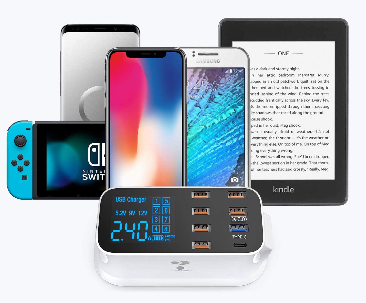 Laddningsstationen 8 in1 är din hjälpreda i vardagen, fullt utrustad med höghastighetsladdningsteknik som gör att du kan ladda upp till 8 enheter samtidigt. Denna USB-laddare med flera portar har en utgångseffekt på över 40 W, vilket gör att du kan ladda snabbt och säkert.