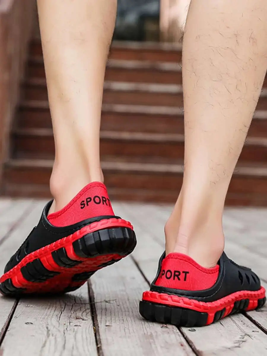 • STILFULLT: Den här lätta håliga bekväma träningsklädseln har en tvåfärgad ton (svart och röd) som aldrig bleknar lätt. Plus en säkrad mjuk bakdel. Perfekt att para ihop med din sommar eller dagliga outfit som boardshorts, joggerbyxor och andra. Det är också nära toed design för att skydda dina fötter från att bli smutsiga i jord eller sand.