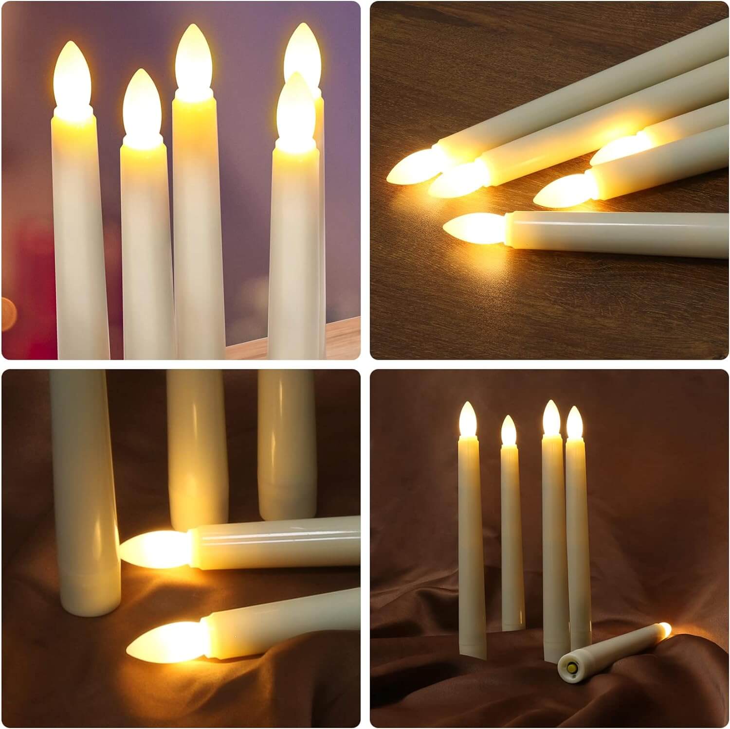 MÅNGSIIDIG BELYSNING: Genom att avge en varm, bärnstensfärgad flimrande ljus som nära nog efterliknar riktiga taperljus är dessa LED-undrar perfekta för att dekorera ditt hem vid speciella tillfällen. Idealiska för sovrum, matsalsbord, fönster, bokhyllor, korridorer, kyrkoaltaren, fester, födelsedagar och bröllopsceremonier lägger de till en touch av elegans i alla miljöer.